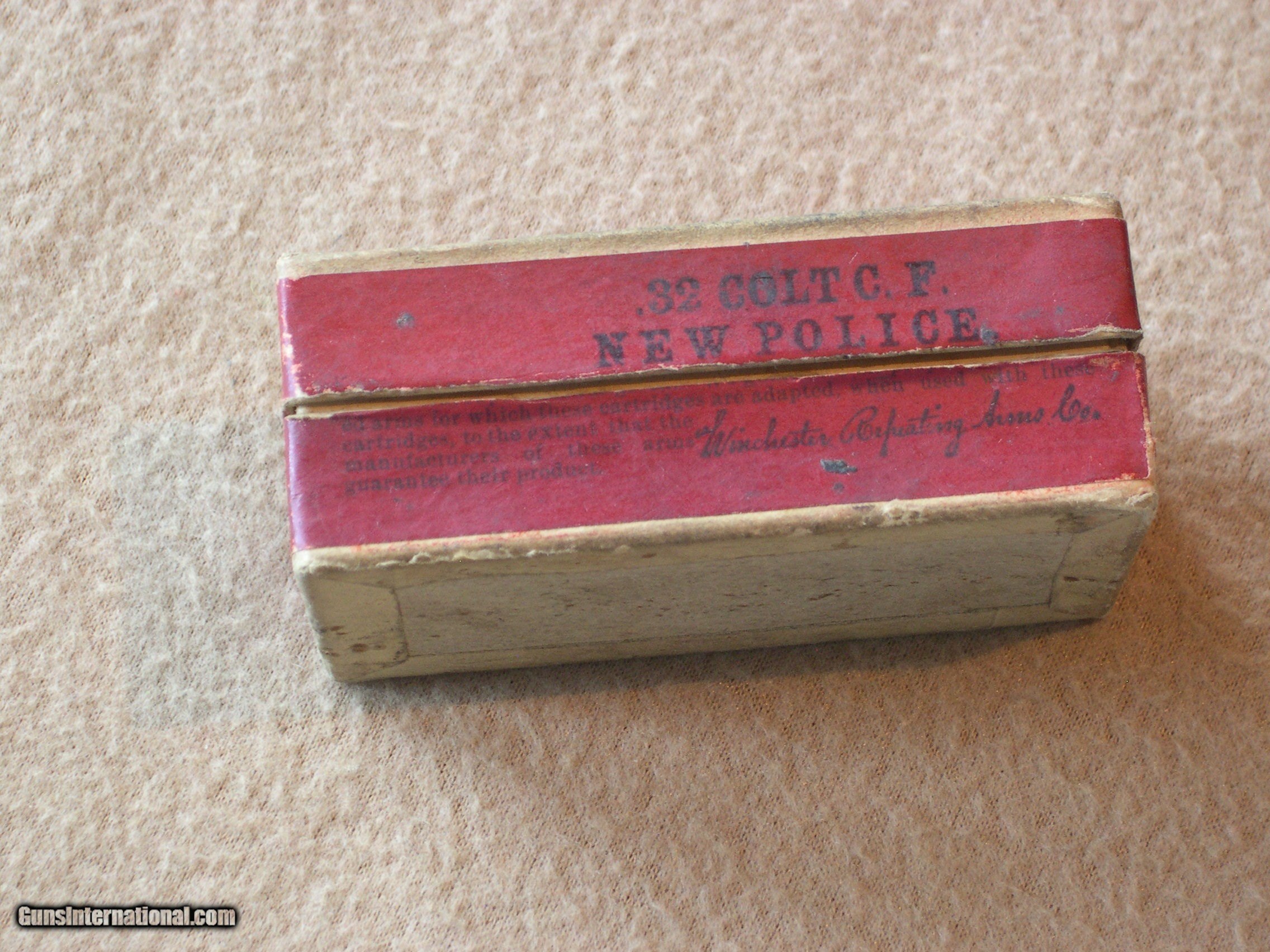 Description: Real nice two pc box, 32 colt N.P. ammo, 12 rds & crisp box with all sides intact. nice display box with gun! SOLD |