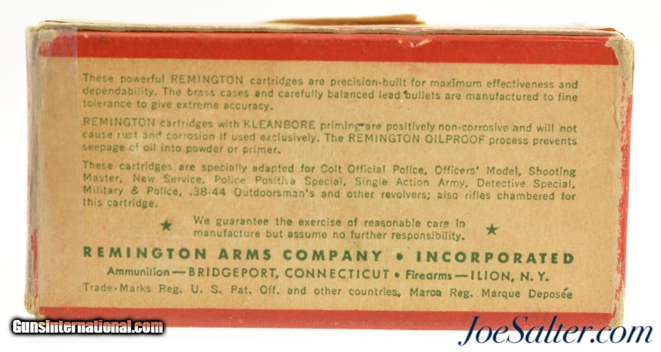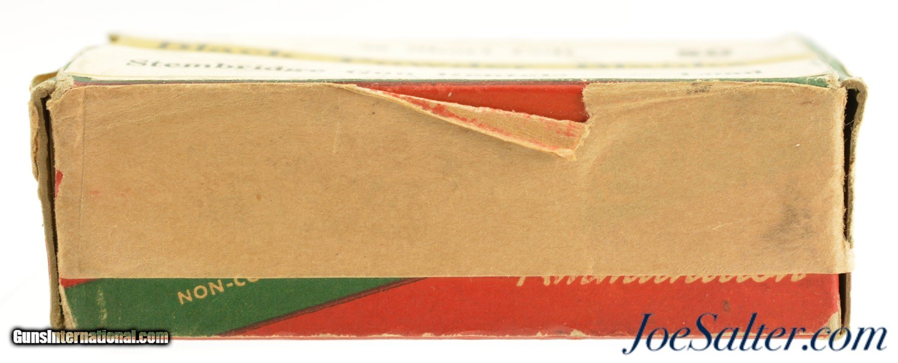 Description: This is a full box, 50 original rounds, of ½ load .38 Short Colt black powder blanks. The Rem-UMC box has been custom labeled for the Stembridge Gun Rental Company with a date of 1955. Produced at the height of Hollywood Western Movies this box was made for the ever expanding television and motion picture industry and "Stembridge Gun Rentals" was the major supplier to Hollywood of guns and ammunition.. The box shows handling and storage wear with a professional repair to a side flap but retains excellent, utilitarian graphics. The cartridges are "REM-UMC 38 Short" with the inside wad printed "1/2" and are in very good condition with age darkening. A unique piece of Hollywood film history. Price: $75.00 Contact Seller |