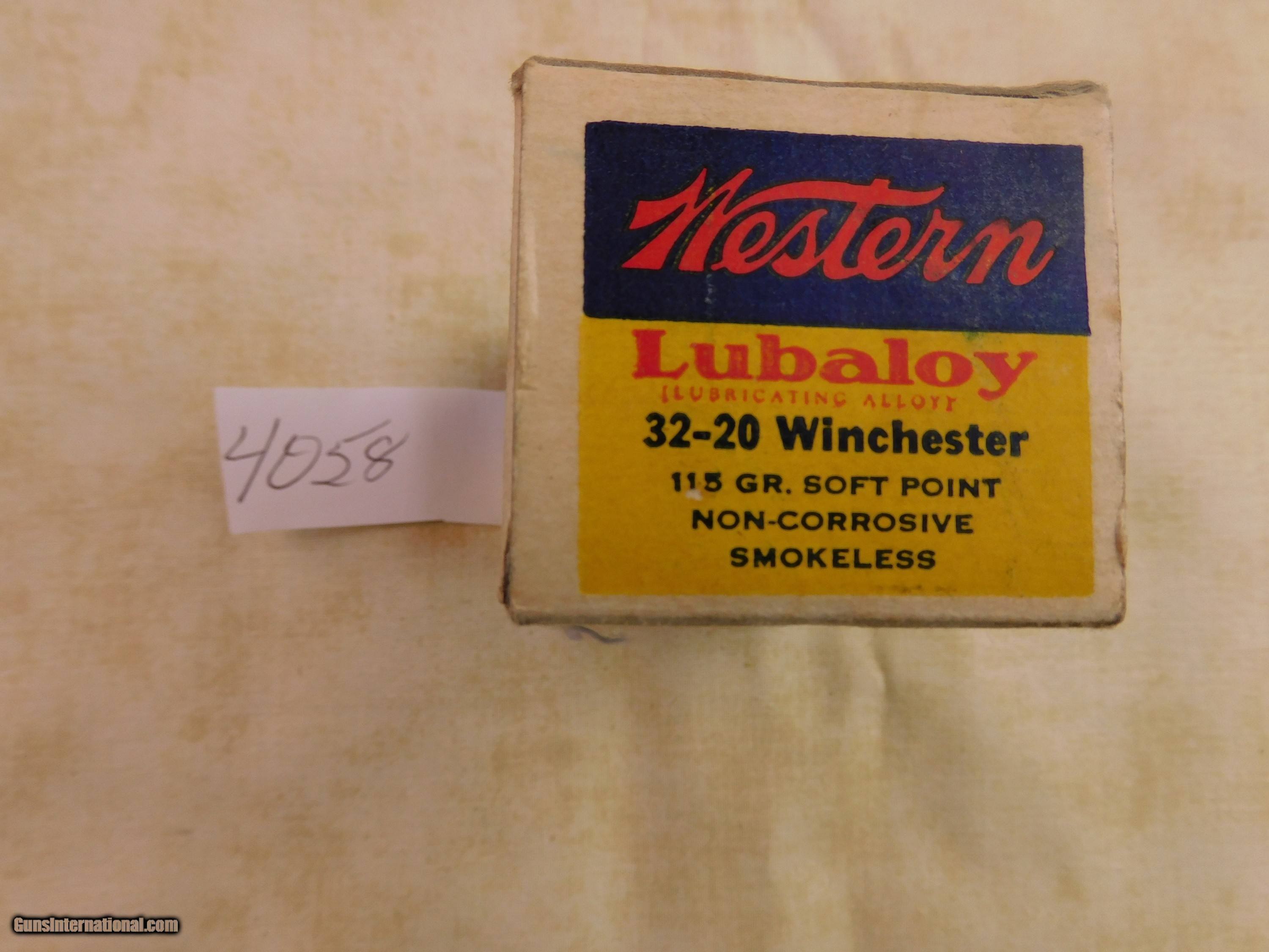 Description: #4058MA 32-20 in a Western blue & yellow 50 rd. box, 115 gr. SP, mint condition. $150 Price: $150.00 Contact Seller |