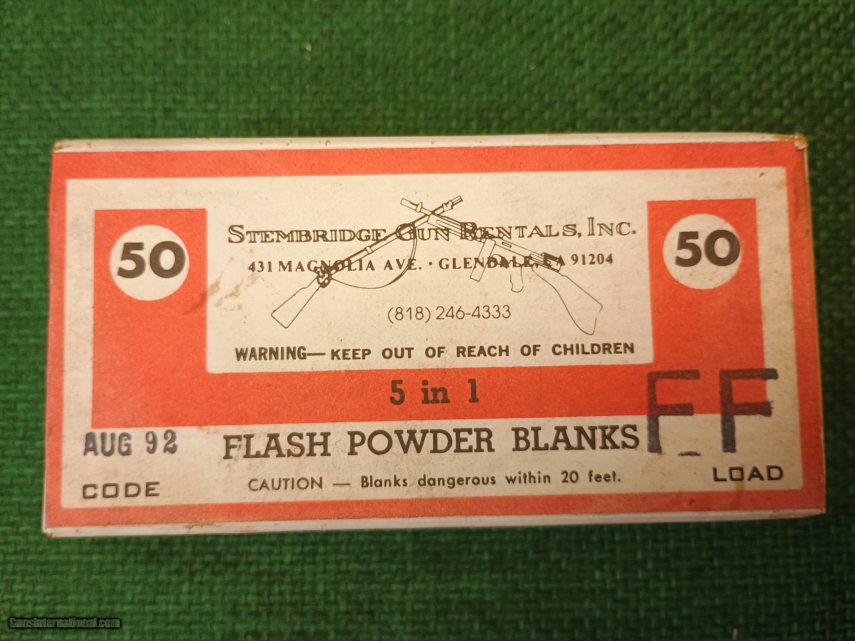 Description: This is professionally mademovie prop ammo known as 5-in-1. This ammo will work in 38-40, 44-40, 45 Long colt, 44 mag and 44 special. There are 4, factory sealed boxes of 50 rounds ea. 200 rounds total Blank routes should always be treated in the same fashion as live rounds and never pointed at people. We will ship these only where it's legal to do so. $40 shipping Price: $185.00 Contact Seller |