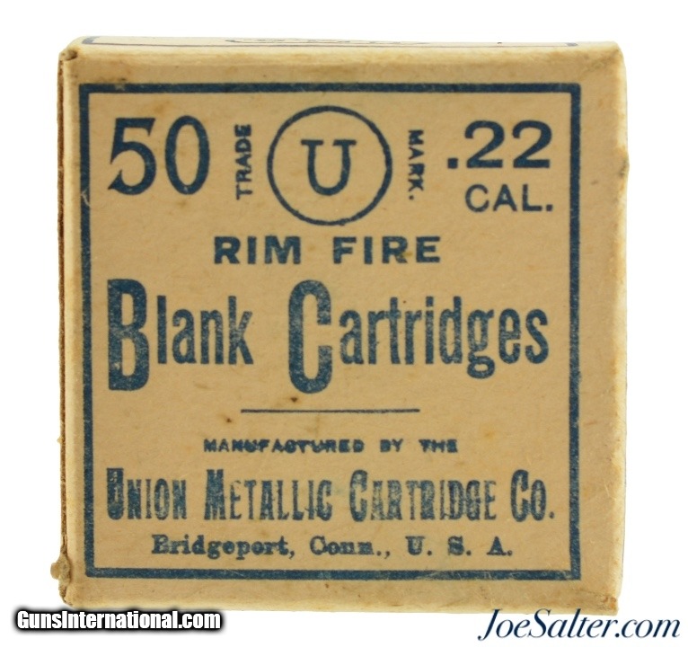 Excellent Union Metallic Cartridge Co. 22 Blank Ammo Full Box Blue Wad