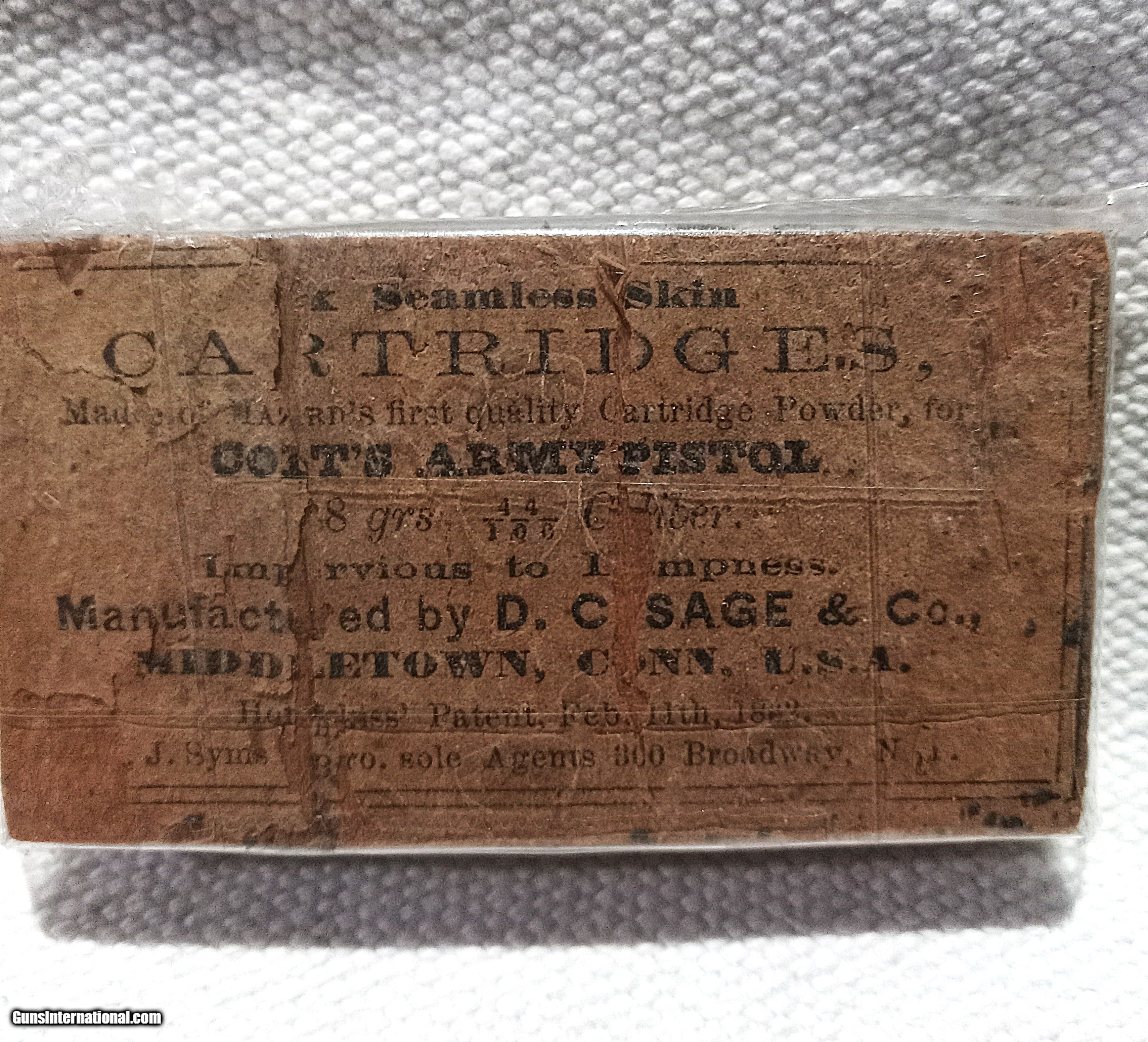 Description: Good condition pack of .44 Cal. cartridges made by D.C. Sage in protective wrapper. Top is open exposing cartridges. Price: $350.00 Contact Seller |