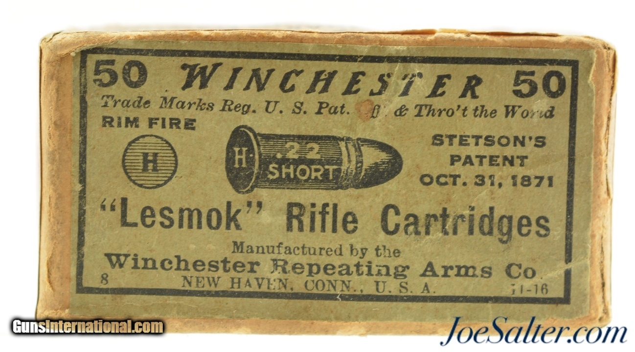 Full & Sealed! Winchester 22 Short "Lesmok" Target Ammo WWI Era 1914 Issue