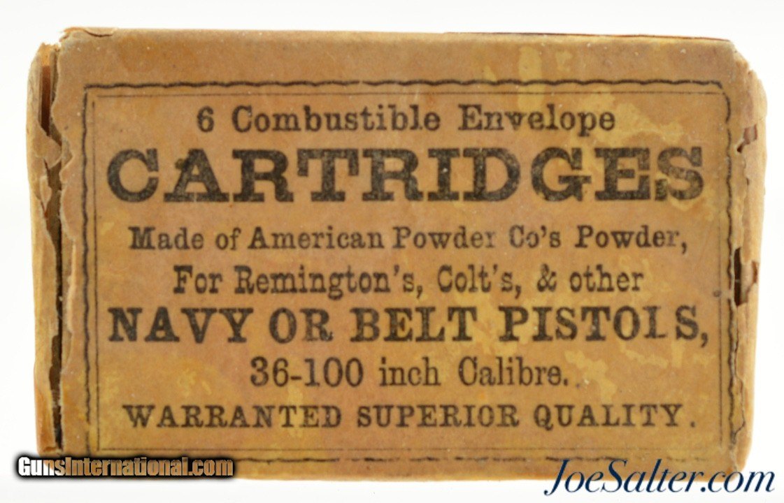 Post Civil War H.W. Mason 36 Cal Navy Combustible Ammo Packet Colt & Remington