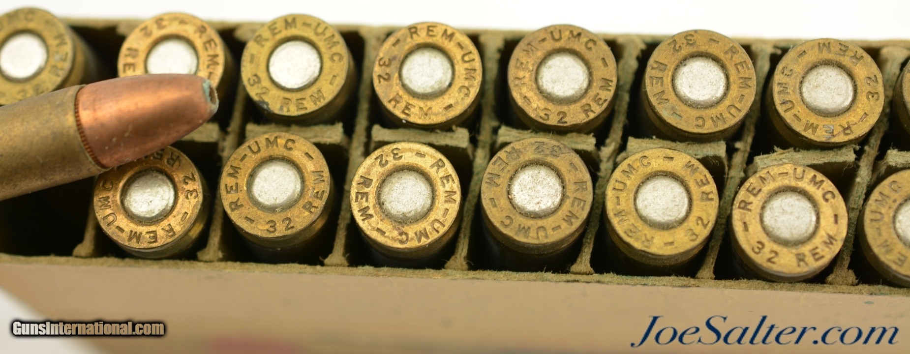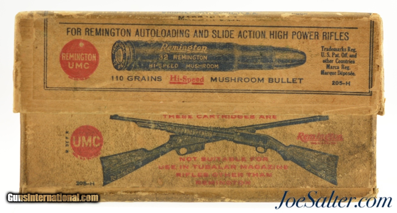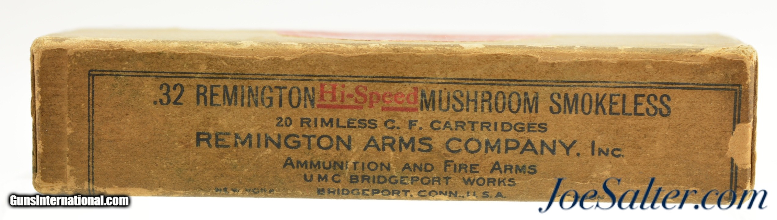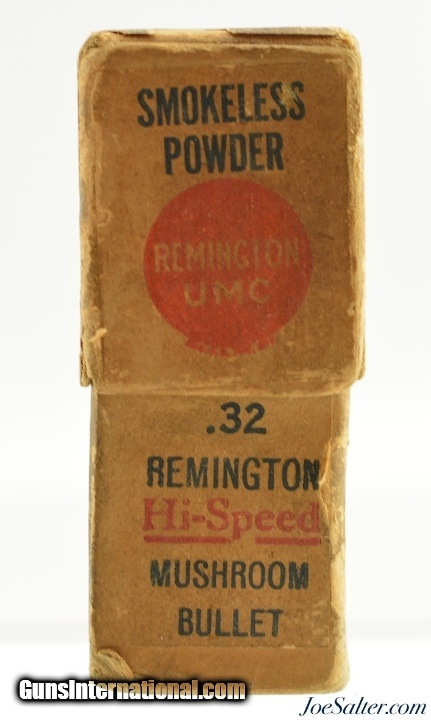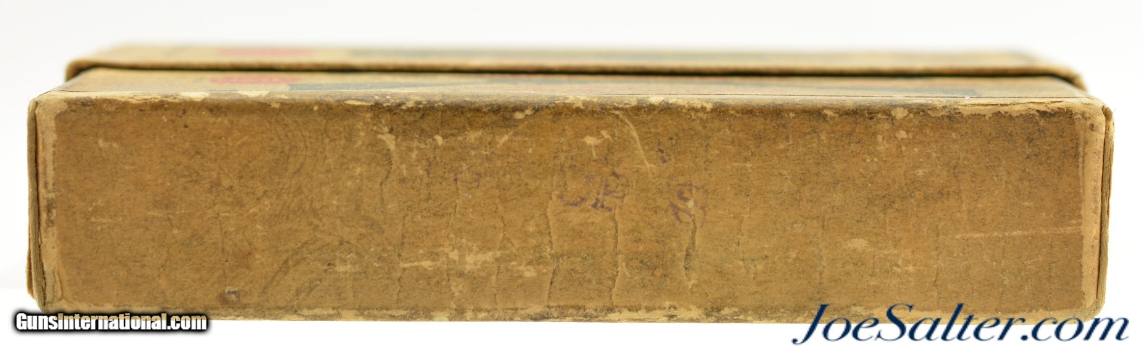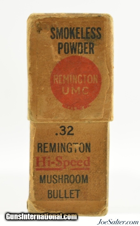 Description: This is a full box, 16 original and 4 soft-point bullets of .32 Remington. The two piece box has an excellent cartridge cut with "Mushroom" call out and features the Remington semi-auto and pump action rifles. The box shows age soiling with intact labels. The cartridges are in excellent condition. Price: $95.00 Contact Seller |