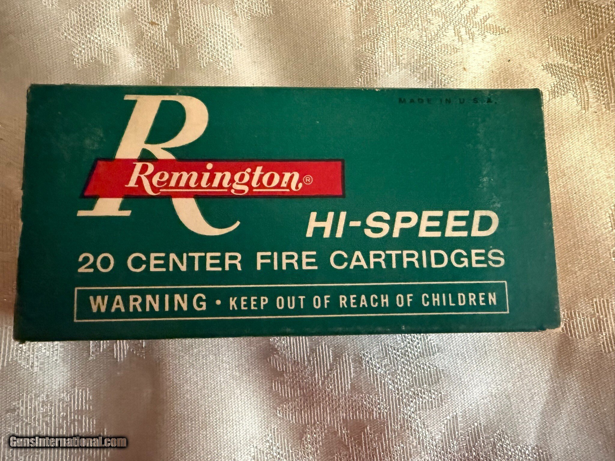 Description: Full Box of Vintage Remington Hi Speed Cartridges 303 180 GR.. Very nice box shows wear on the edges but all flaps are in place. Rifle Caliber: .303 Savage Price: $90.00 Shipping: $20.00 Pay with