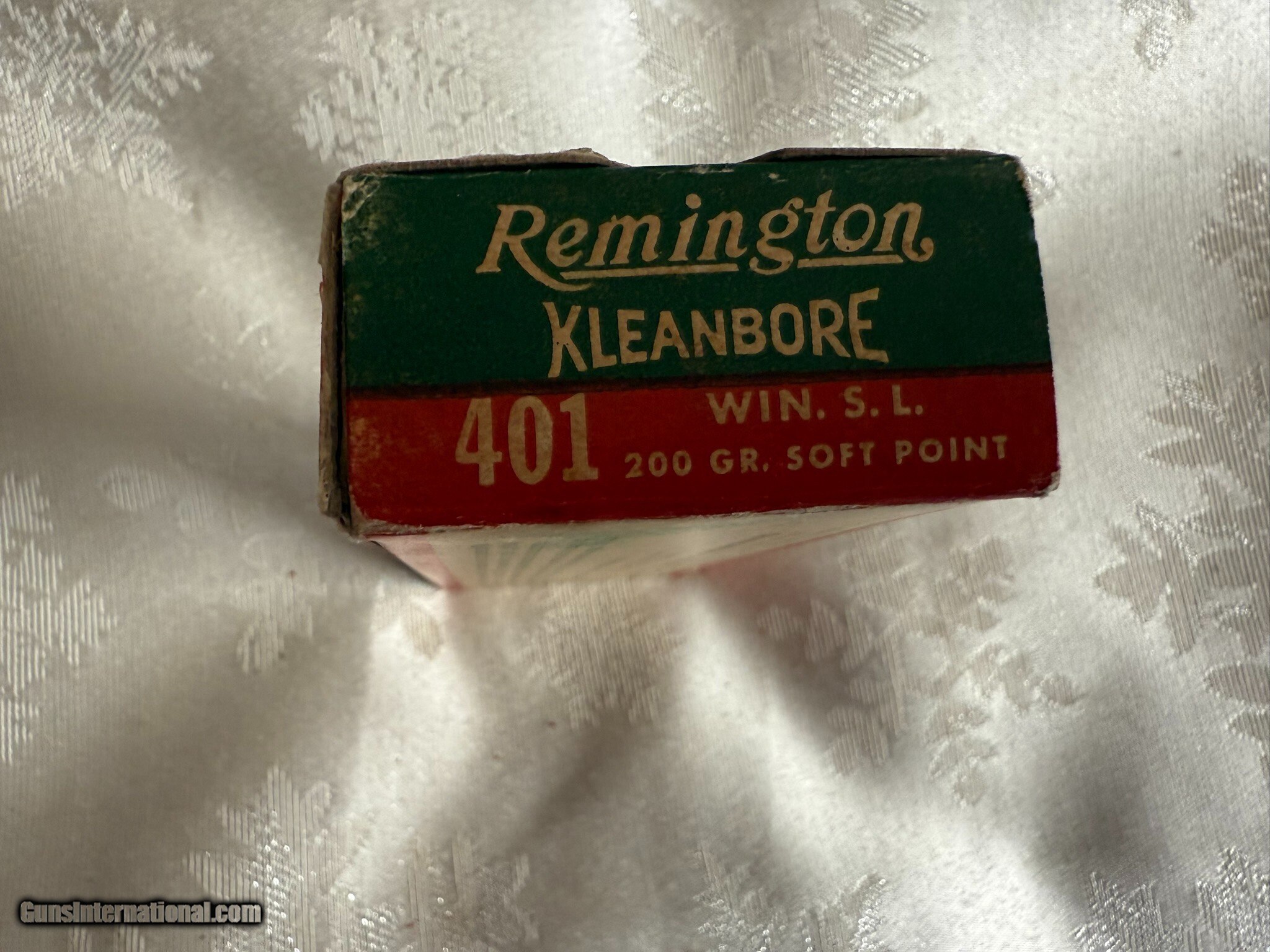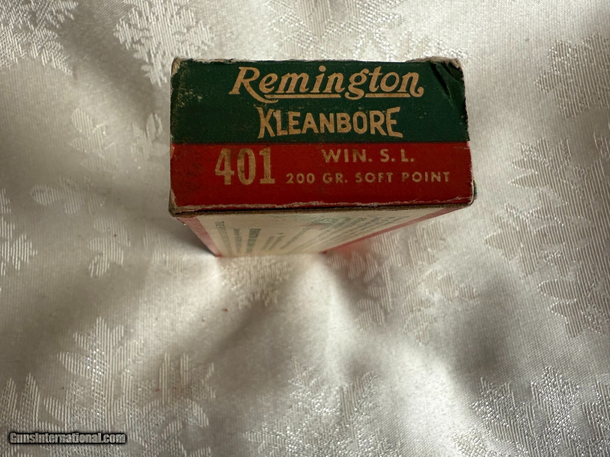 Description: Full Box Remington 401 Self Loading 200 Grain soft point bullets. Box is in very good condition, however Flaps are not attached on one end of the box. The box overall is in good conditoin with wear on the edges. Rifle Caliber: .401 Winchester Self-Loading Price: $110.00 Shipping: $20.00 Pay with