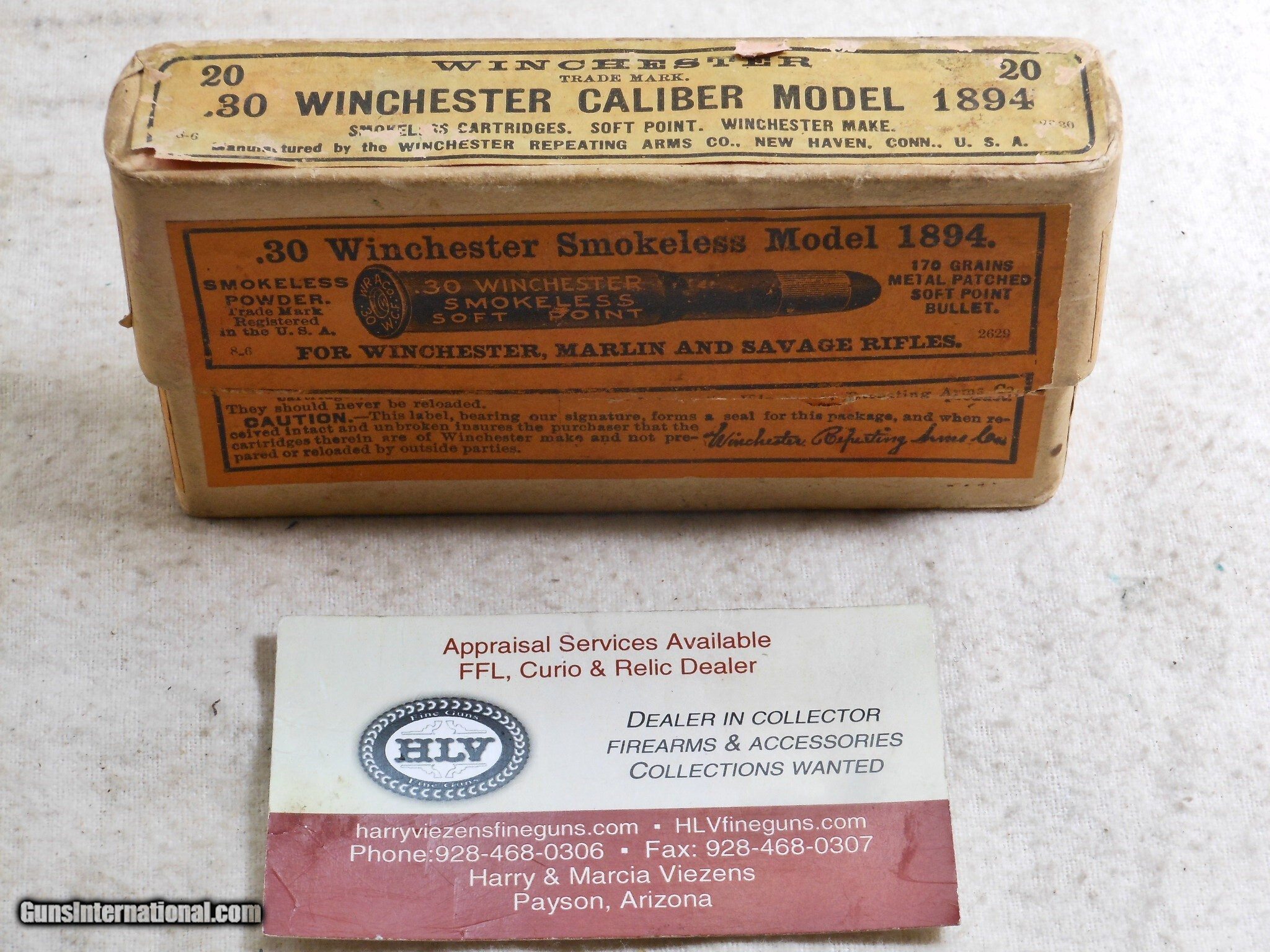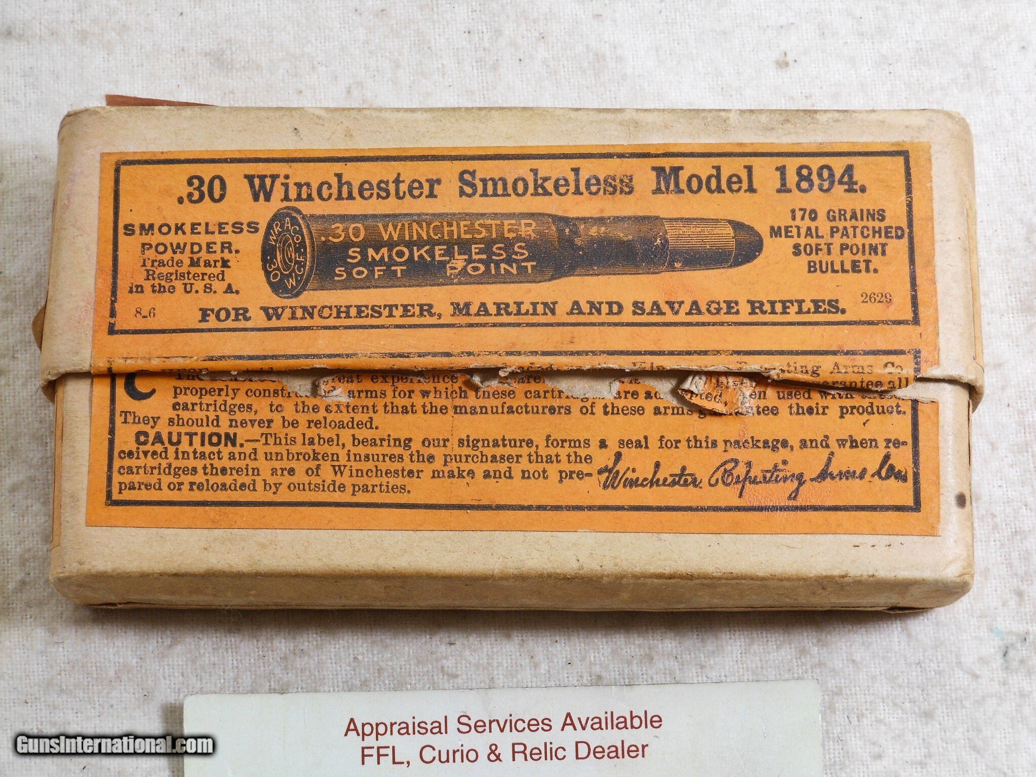 Winchester Early Full Box Of 30 W.C.F. With Reinforced Primers