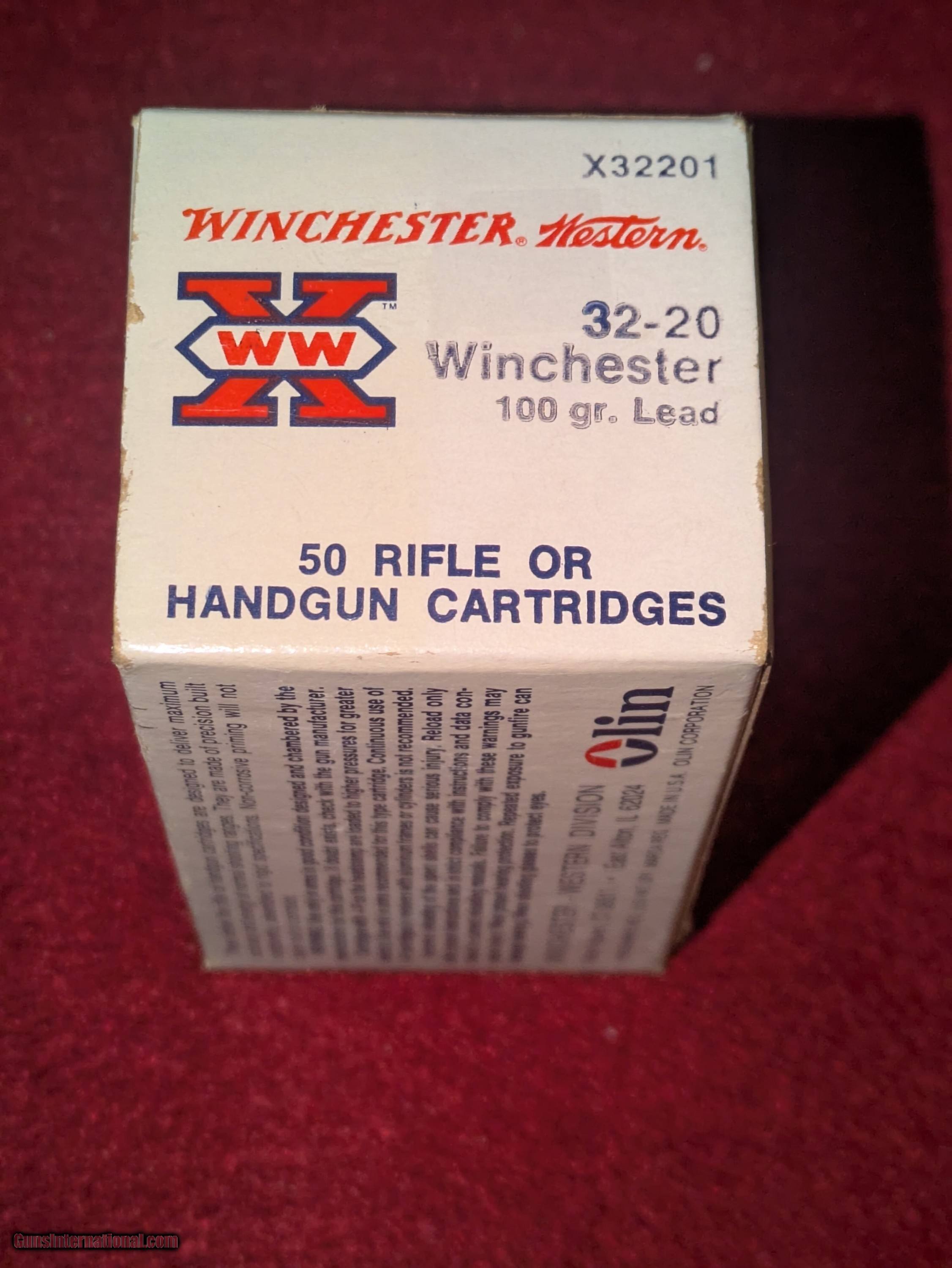 Description: Factory full 50 round box of Winchester Western 32-20. 50 rounds of 100 grain lead ammo. Nice clean box good color. Ammo is nice a bright and ready to go. I combine shipping and also accept visa and MasterCard for payment but it adds 4 percent to total. 65.00 plus shipping Rifle Caliber: .32-20 Winchester Price: $65.00 Contact Seller |