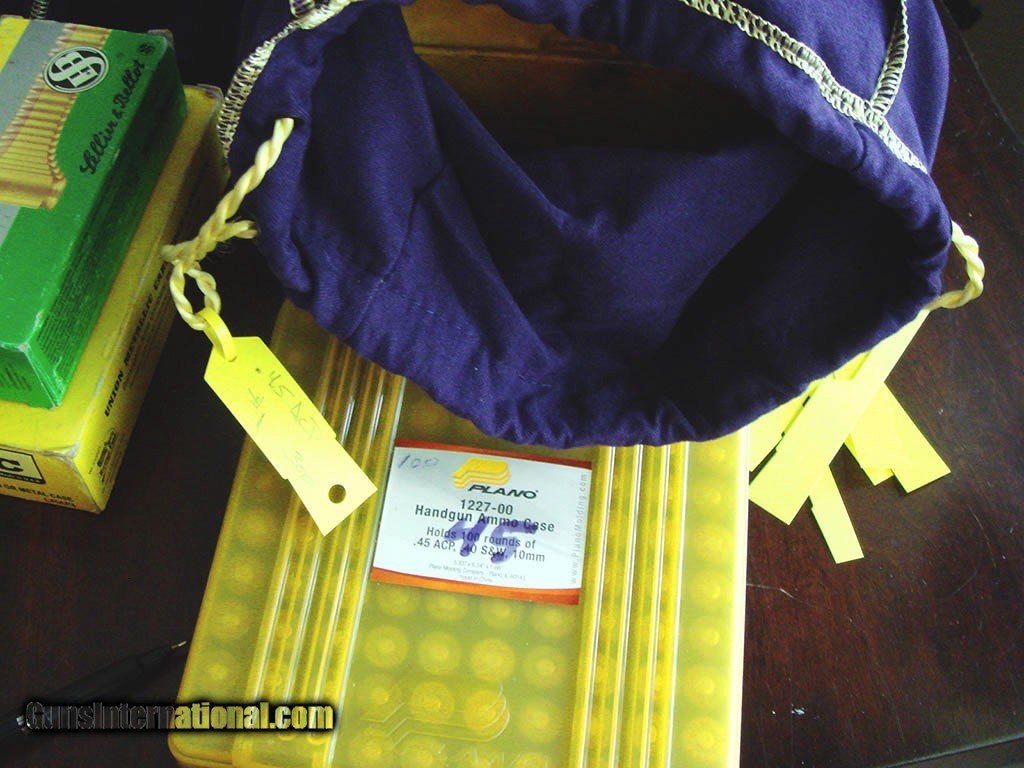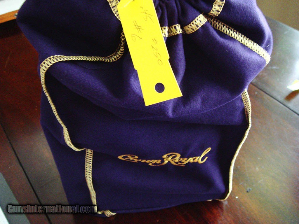 Description: Description: From the estate of a late Air Force Colonel in Tampa, FL. He was an avid competition shooter who had been reloading for fifty years. All of his ammo is of the highest quality. He was also an avid Crown Royal enthusiast, and every few hundred rounds will be wrapped in a new blue bag. Lot A-002 is for one-thousand-four-hundred and fifty (1450) rounds of .45 ACP. These are being sold as is, no returns on ammunition. Should you deem them to be unsafe, you can de-construct for reloading. All are as brass, bright and clean with no damage or marks. Includes USPS ground shipping Price: $650.00 SOLD Handgun Caliber: .45 ACP (.45 Auto) |