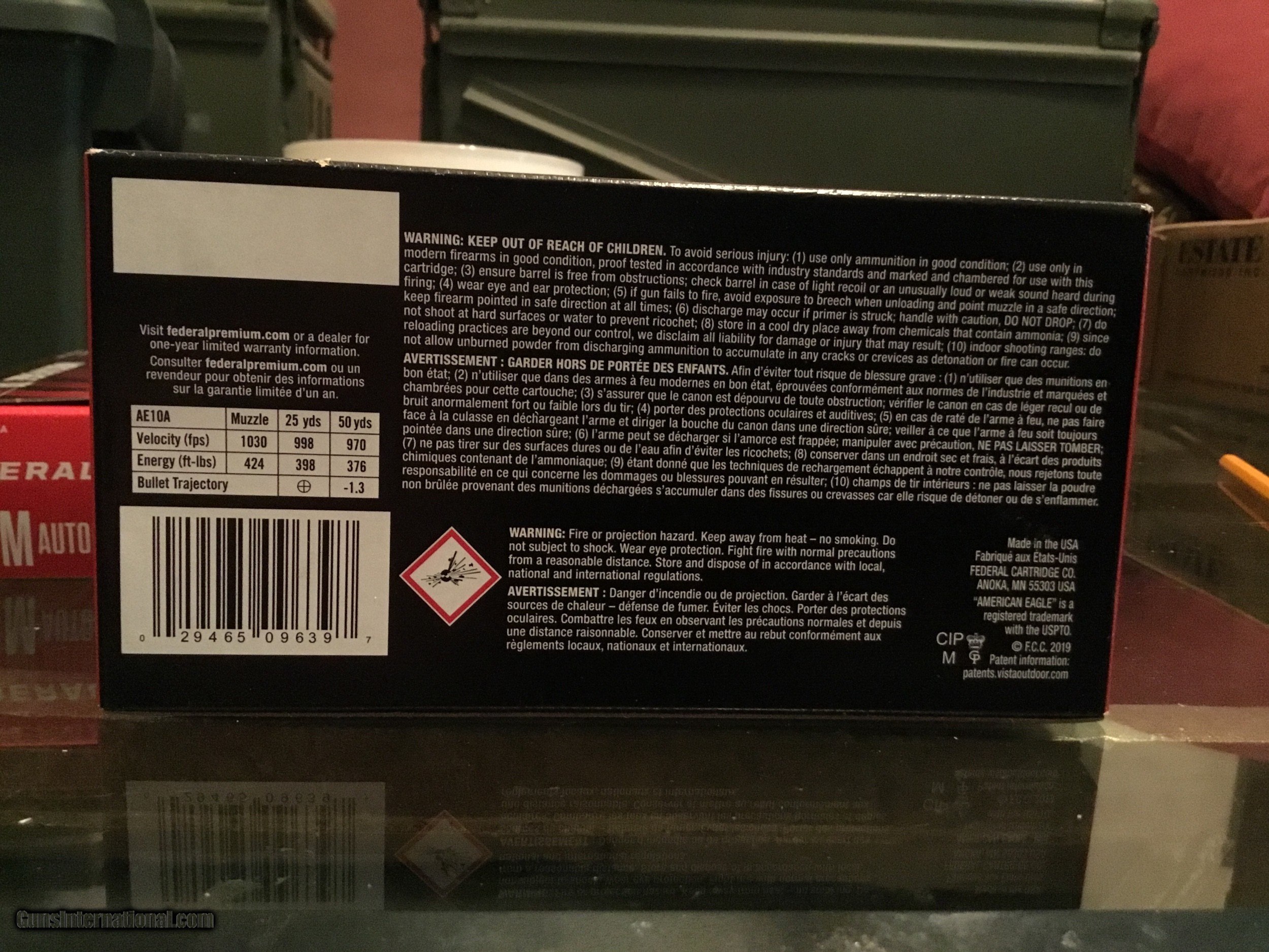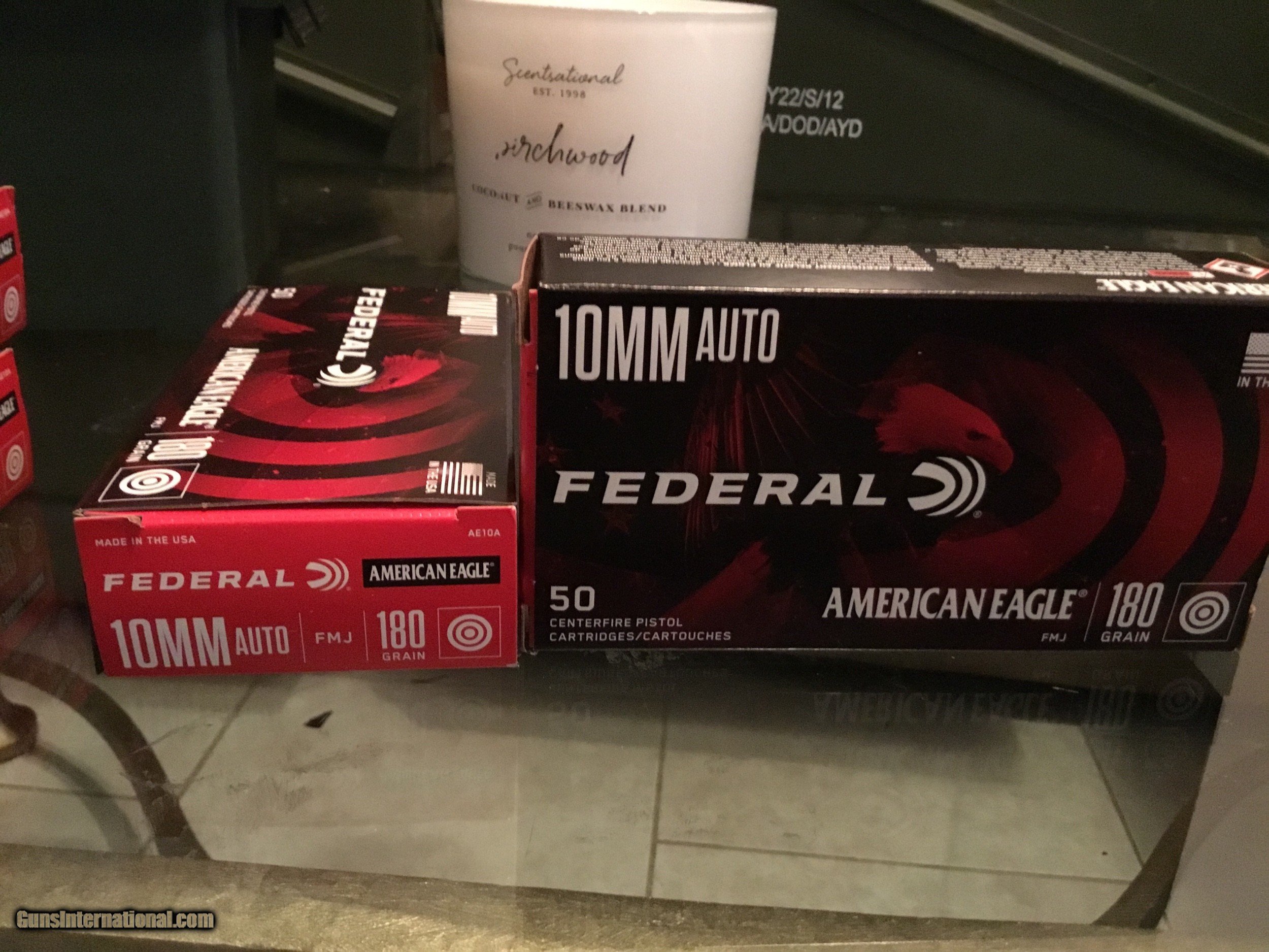 Description: Federal American Eagle 10mm,180gr,fmj !00 rounds,50rnd boxes Shipping;priced by UPS when purchase SOLD Handgun Caliber: 10mm Auto |