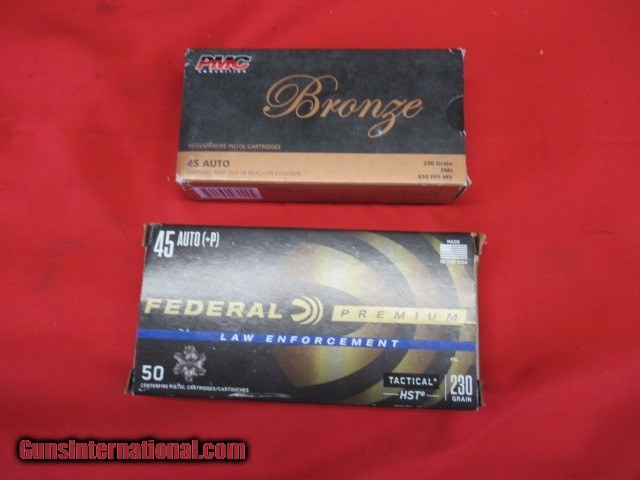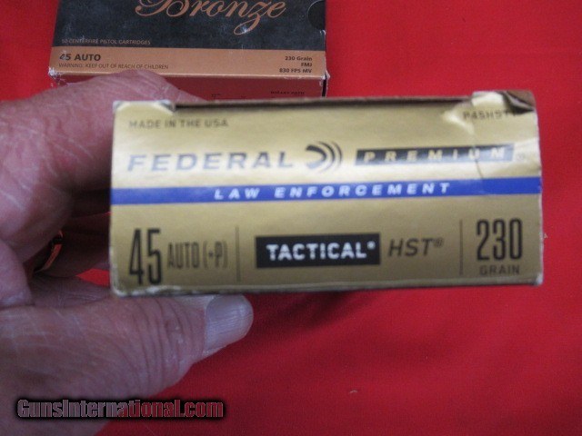 Description: Federal 230 Gr Tactical HST & PMC 230Gr, FMJ, Buyer pays 15.00 shipping Pa residents add 6% sales tax, Price is for check or money order, cC add 3%, NO sales where prohibited, Must be 21 SOLD |