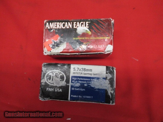 2 Boxes 100 Rds 5.7X28MM Ammo 1 Box FNH 1 Box American Eagle