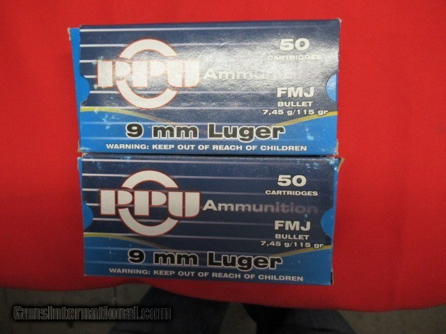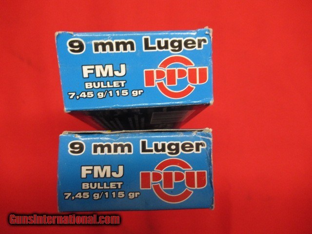 2 Boxes 100 Rds PPU 9MM Luger Factory Ammo
