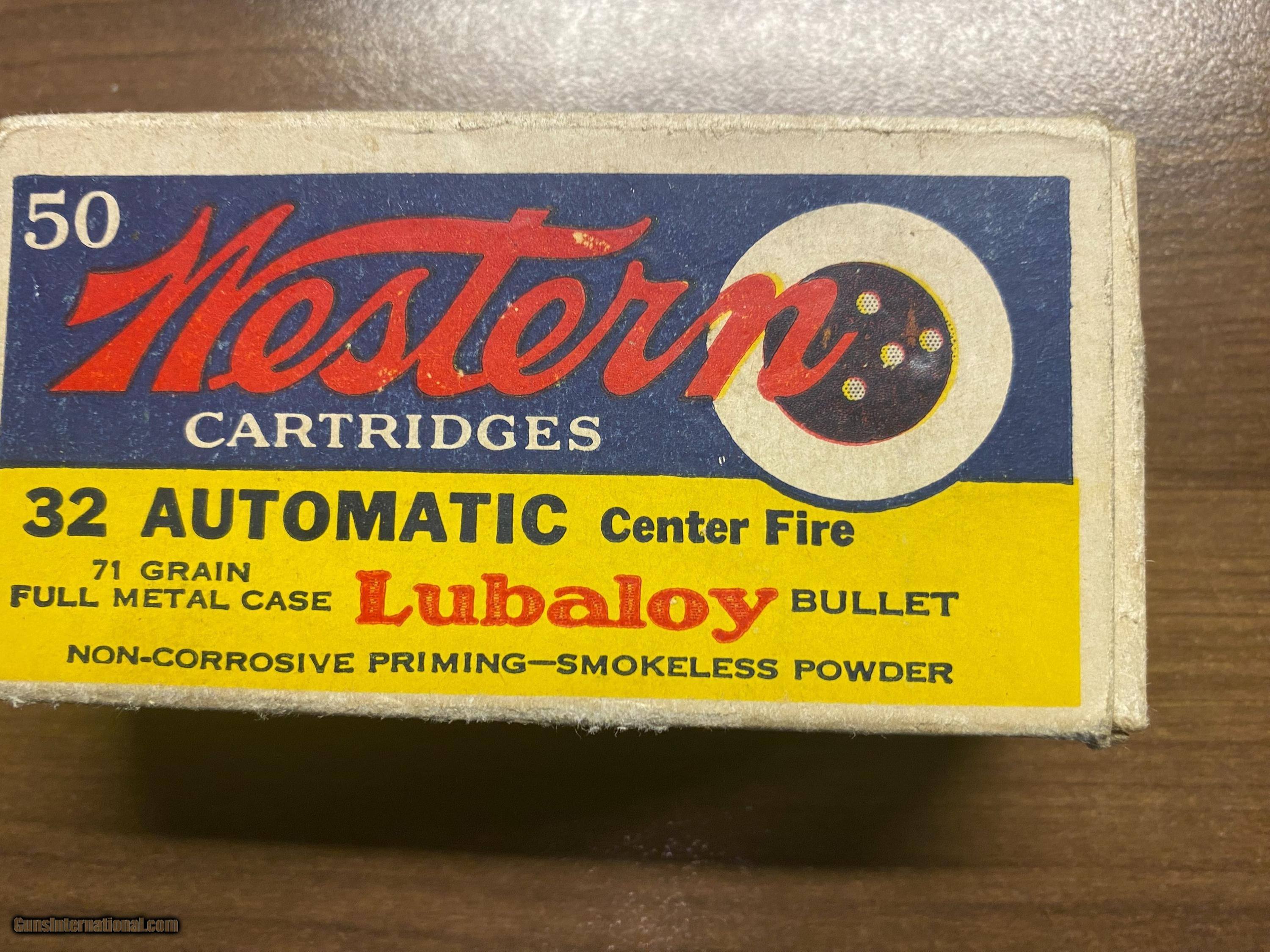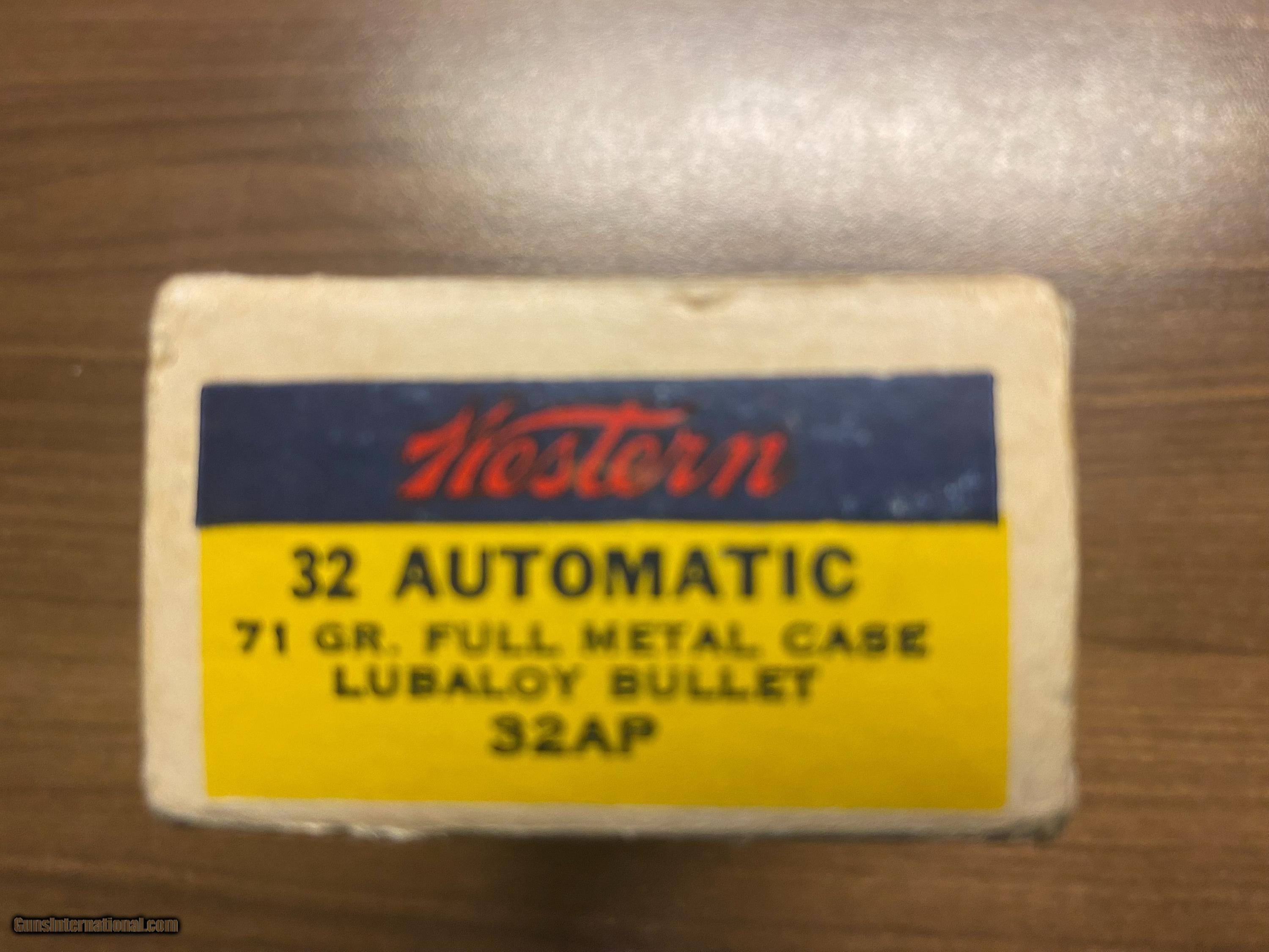 Description: western 32 auto center fire 71 grain full metal case (lubaloy) bullit 32 ap plus shipping SOLD |