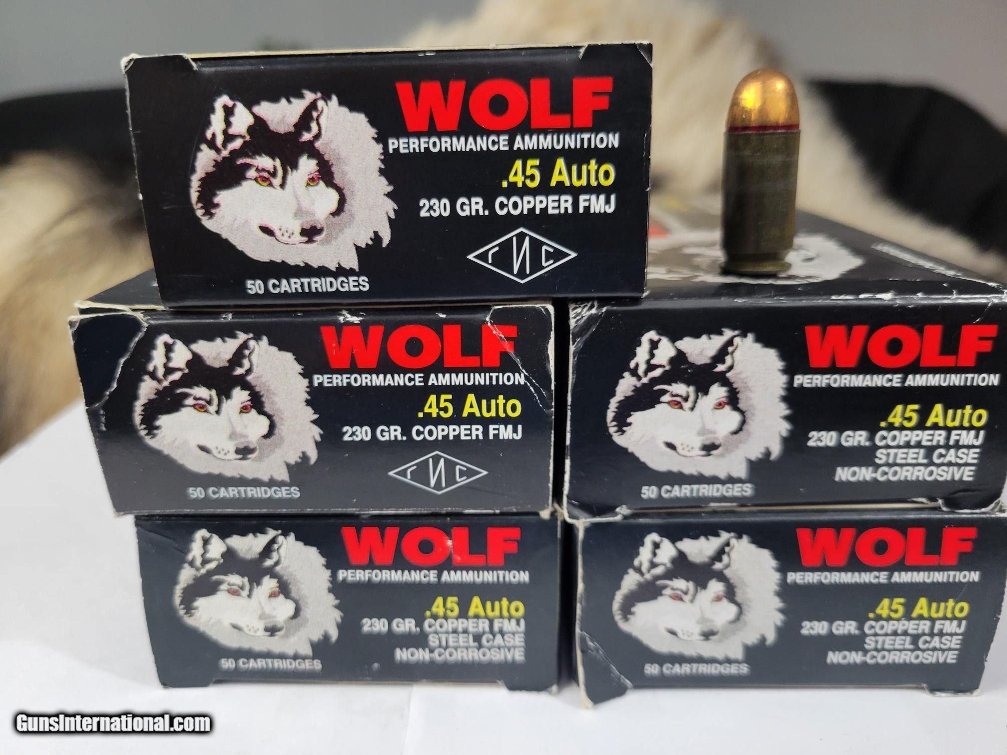 45 ACP Ammo 230gr FMJ Wolf Performance Ammo