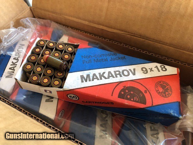Description: Carton of 9 mm Makerov Russian steel case ammo. 19 boxes of 50 rounds each. Total of 950 rounds delivered to your door. Paid shipping SOLD |