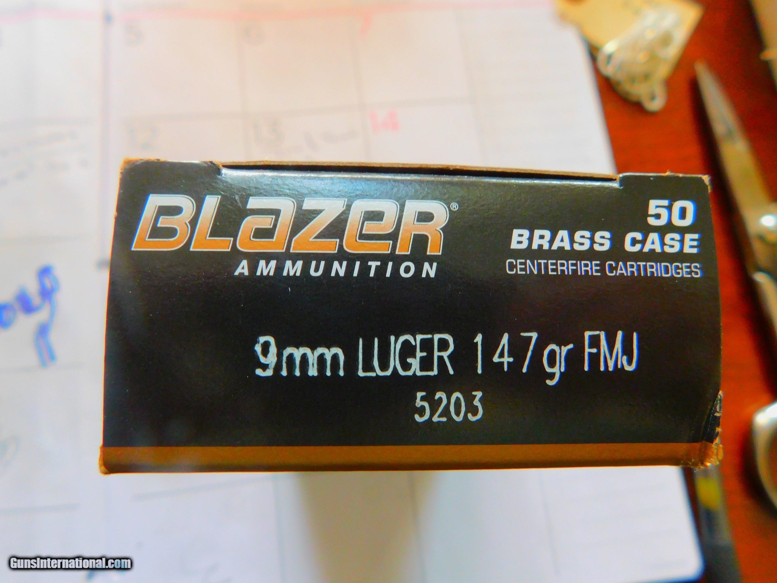 Brass case 147 grain FMJ in 50 rd boxes Blazer