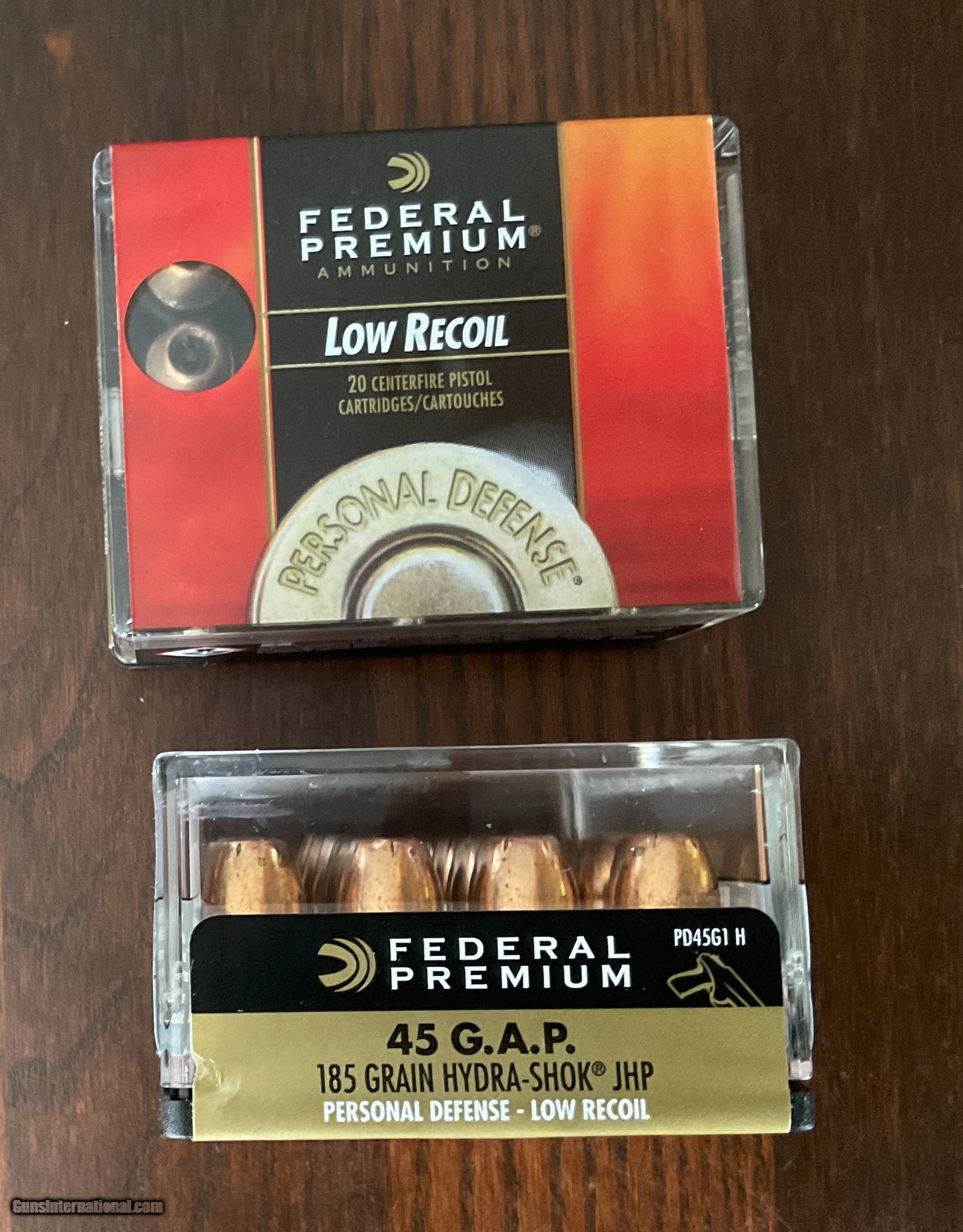 Federal .45 GAP 185gr Hydra-Shok JHP Personal Defense Low Recoil Ammunition - two 20-rd boxes (40 rounds total)