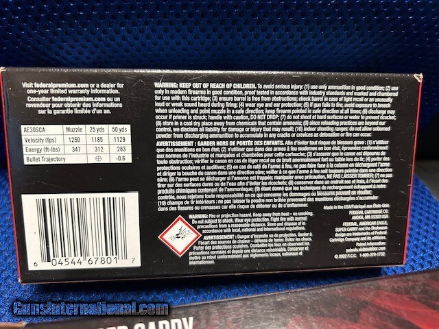 Description: Federal, American Eagle, 30 cal., Super Carry, FMJ, 100 gr., 2 boxes available, price is PER BOX. Price: $25.00 Contact Seller |