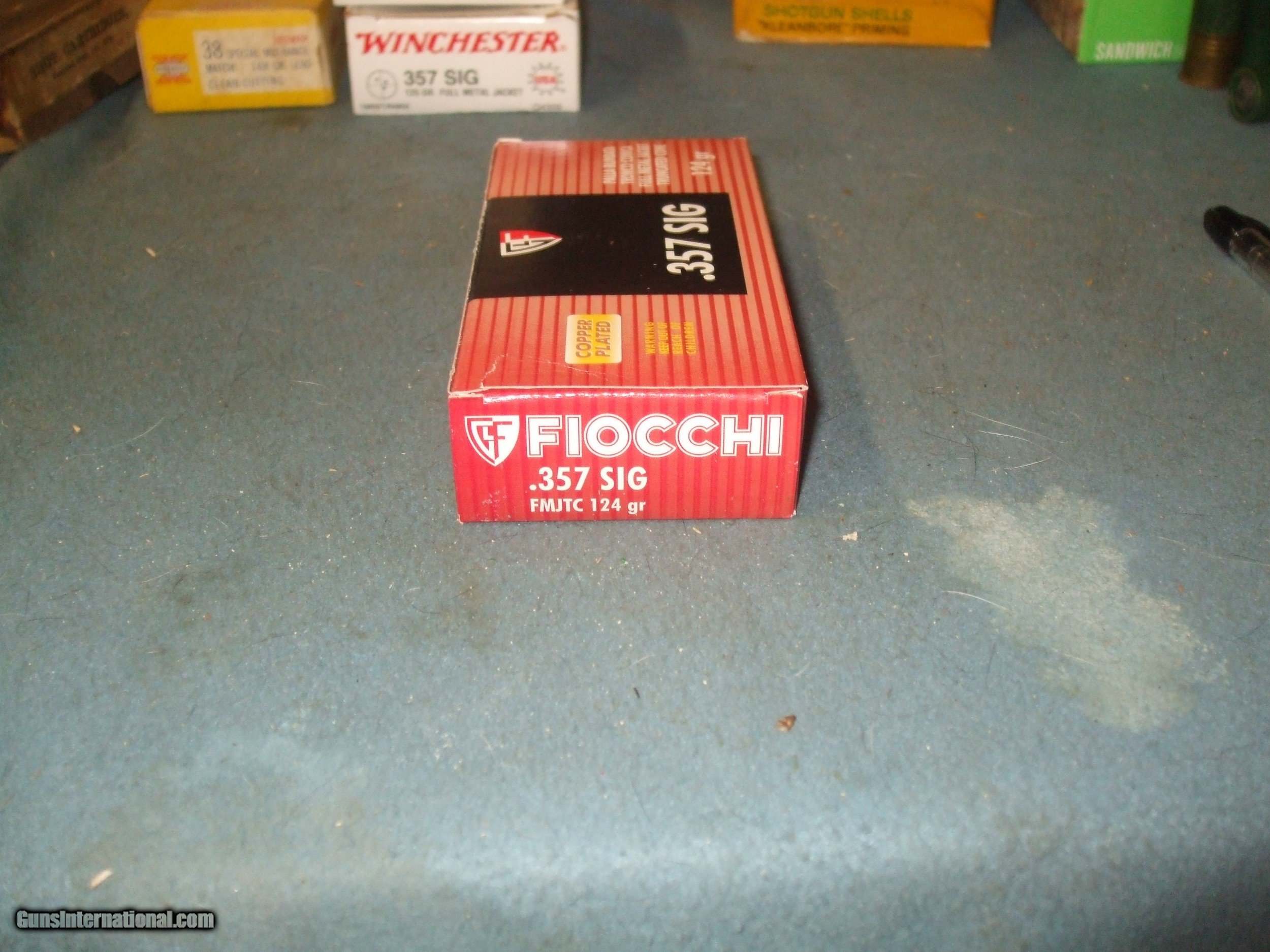 Description: Fiocchi 357 Sig 124gr Full metal jacket truncated cone. Brand new ammo full box 50rds. Multiple boxes available. Please note cannot ship to CA, MA, NJ, IL or any other restricted areas. I am located in Delaware and can deliver locally. SOLD Handgun Caliber: .357 SIG |