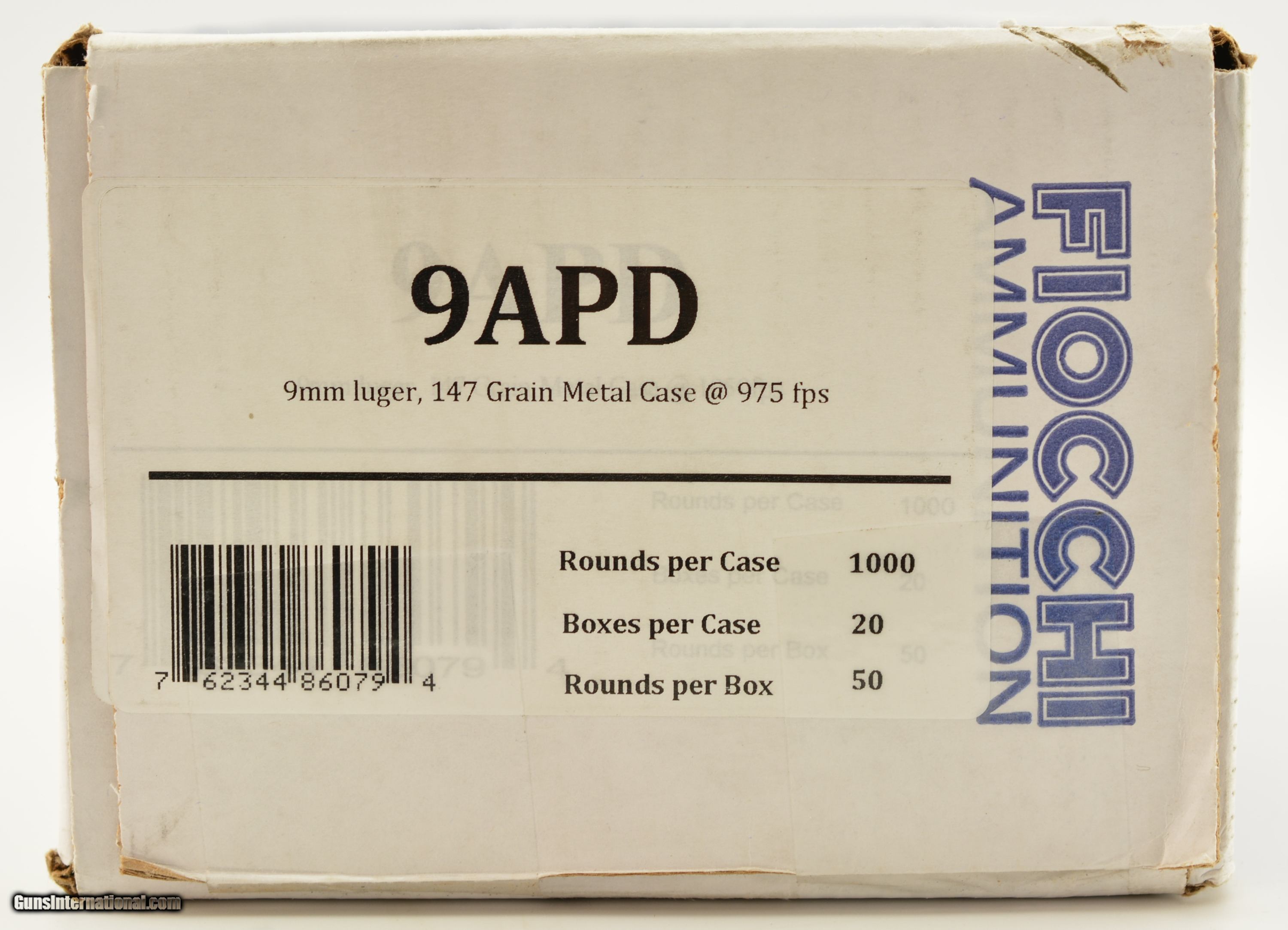 Description: This is a case of 1000 Fiocchi 9mm Luger 147gr. Metal Case Subsonic 975fps, 9APD. This is NOS 20 boxes of 50 cartridges in sealed original case. SOLD Manufacturer: Fiocchi Model: Ammo Caliber Info: 9mm Gauge Info: 9mm |