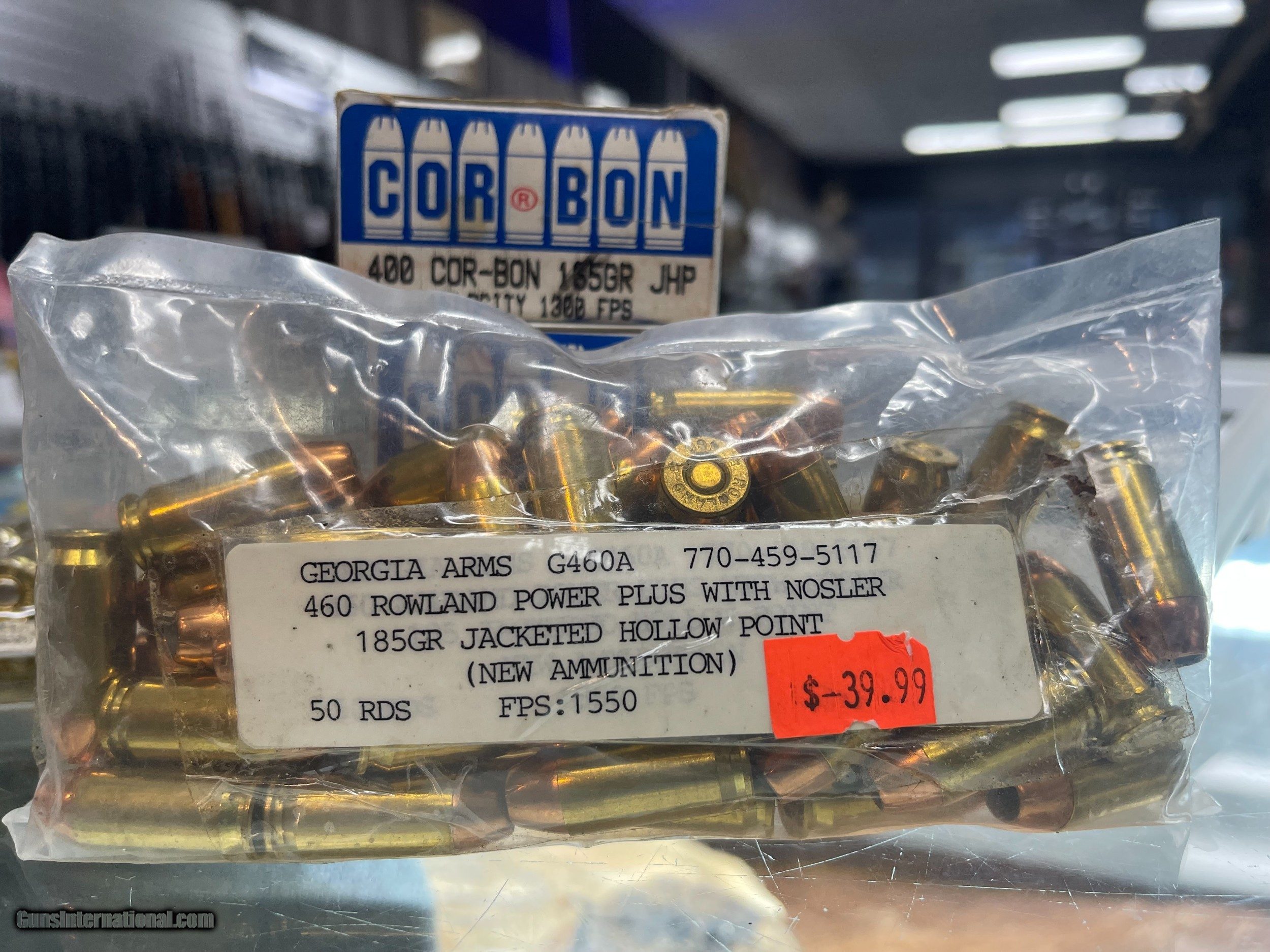 Description: GEORGIA .460 ROLAND +P+ 185GR NOSSLER POWER PLUS JACKETED HOLLOW POINT $39.99 PER PACK 1 PACK AVAILABLE SHIPPING:$20.00 FLAT RATE SOLD Handgun Caliber: .460 Rowland |