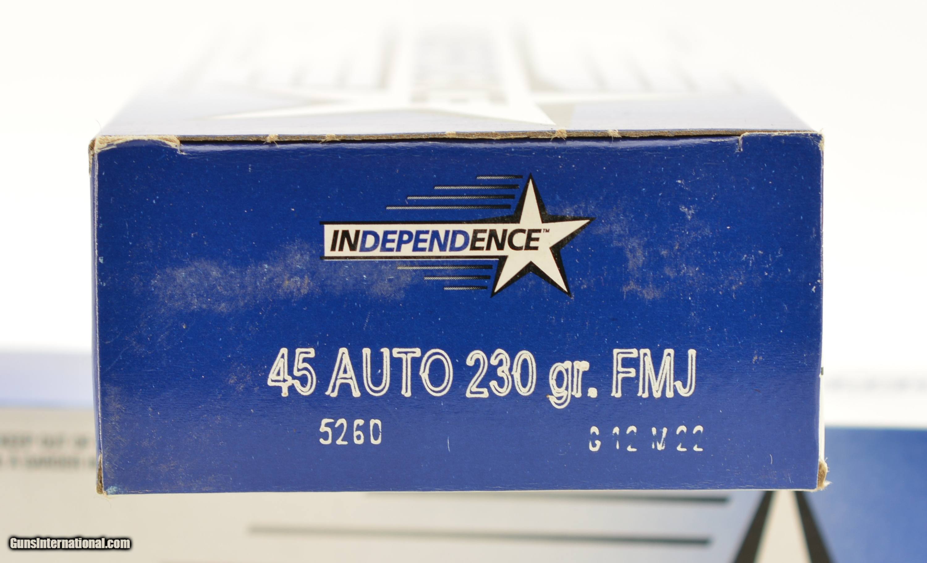 Independence 45 Auto Ammunition 230 GR FMJ 100 Rounds