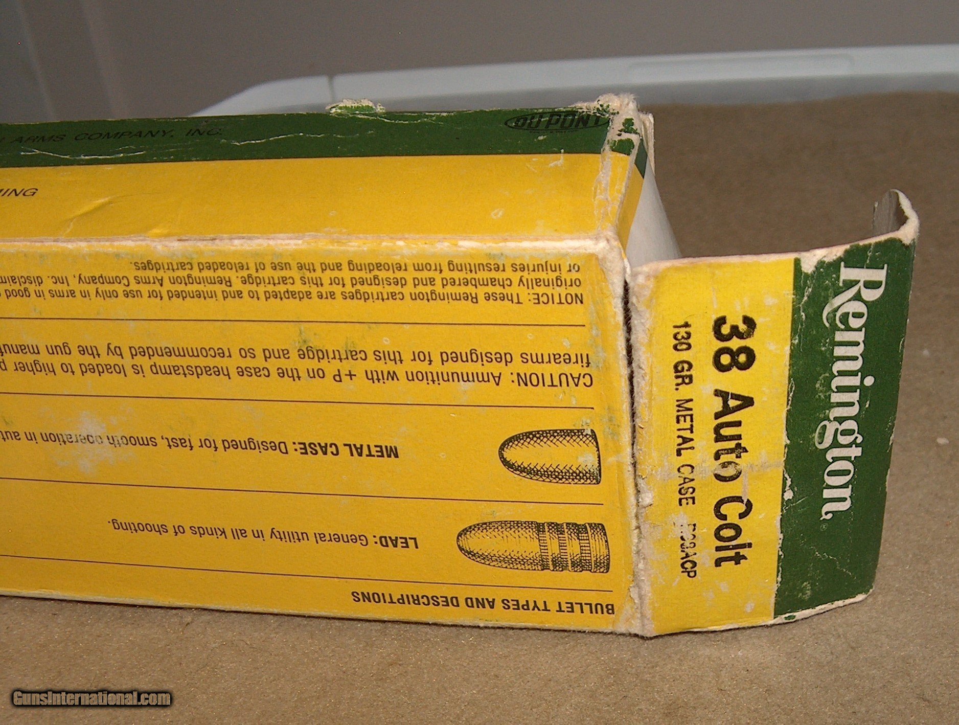 Description: For your consideration is a box of Remington 38 Auto Colt, 50 rounds factory. Some of these have a bit of oxidation on them. I tried cleaning up a couple and they should clean up enough to shoot. Sale price includes shipping SOLD Handgun Caliber: .38 Auto (.38 ACP) |