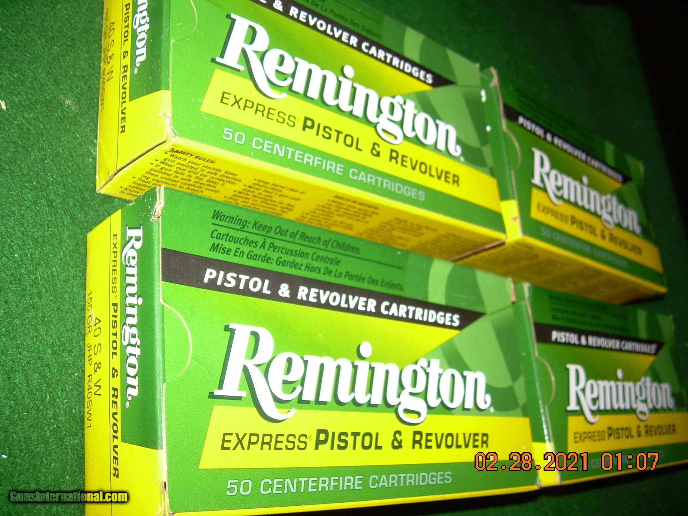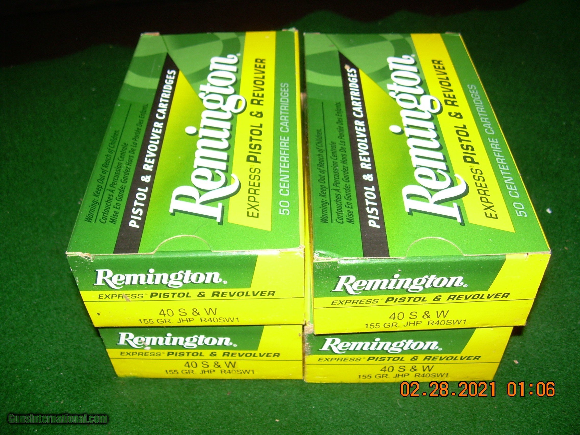 Description: New, factory Remington, 4ea 50 round boxes for one money, includes shipping to lower 48 by fedex ground. sorry- no credit cards SOLD Handgun Caliber: .40 Smith & Wesson (.40 Auto, 10 x 21 mm) |