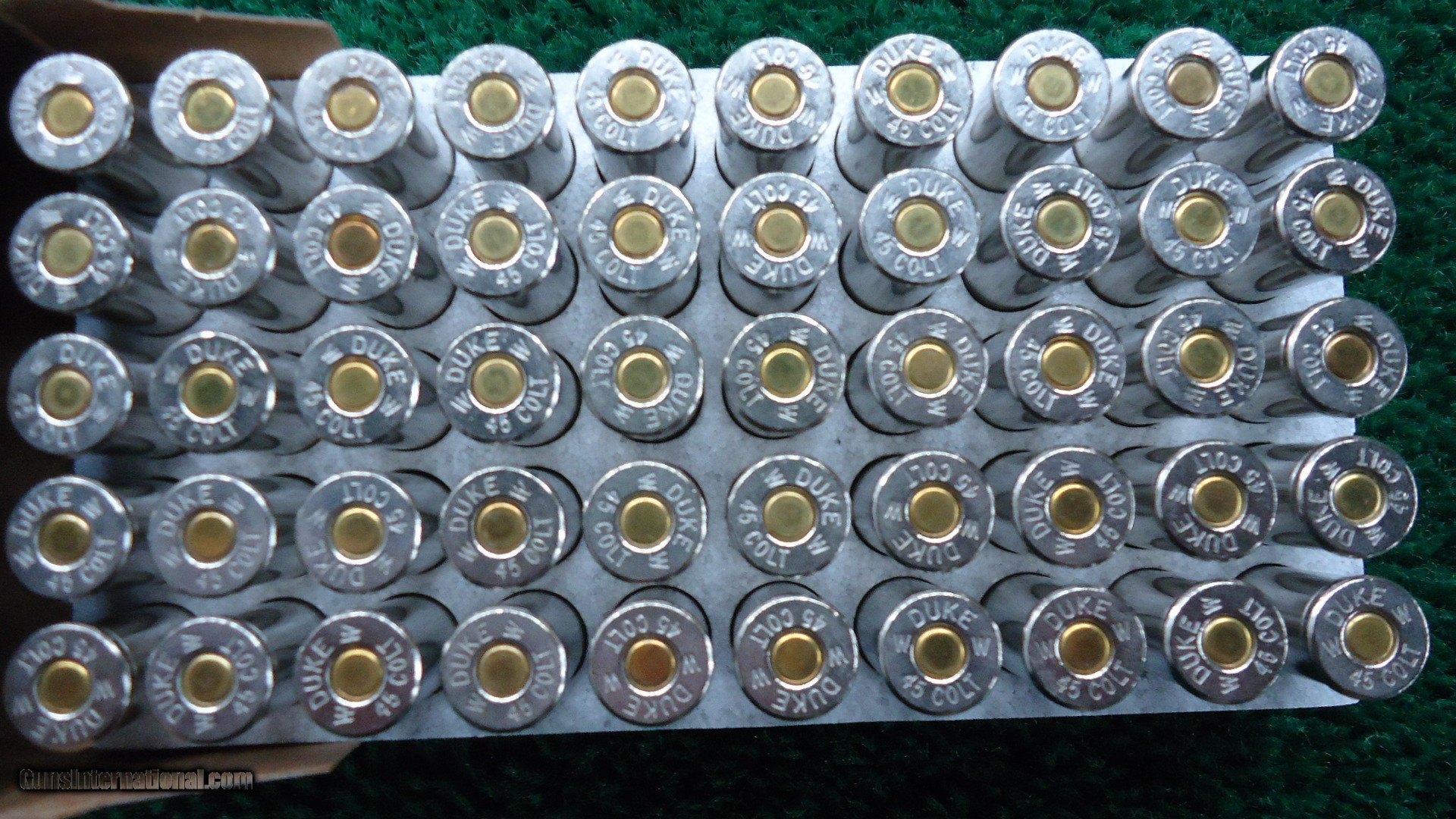 Description: Full box Special Limited Edition Collectors set of John Wayne packaging new in 2007. New in box Winchester Collectible John Wayne ammunition. Full box of 50 cartridges 45 COLT 250 grain lead flat nose bullets. Cartridges have a unique head stamp "Duke" and are packaged in a specially designed foil embossed box. Very nice condition box with only very minor scuffs. Hard to find. Get them while you can for your collection. Free shipping. Leroy Merz Antique Firearms specializes in antique and vintage Winchesters and other fine American firearms. Since 1965 Mr. Merz has taken part in the world of firearms and has been a contributor to many well known reference books. We have hundreds of additional guns in every price range at our home online. Search for Merz Antiques in google. SOLD Handgun Caliber: .45 Colt |