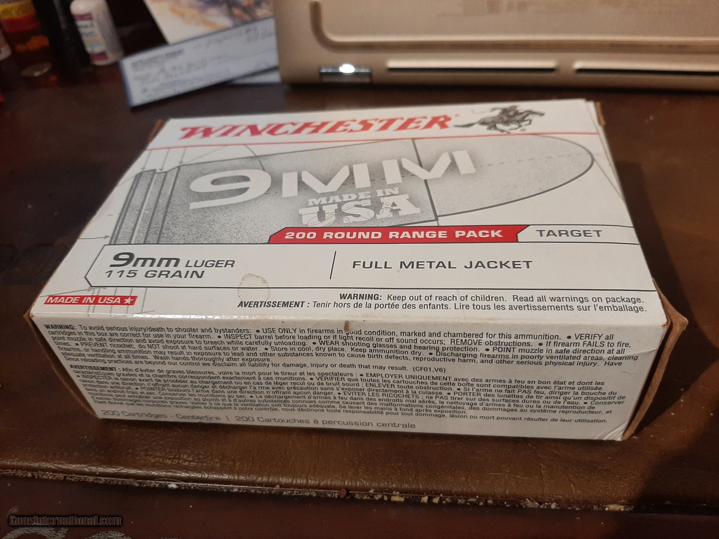 Description: Winchester 9MM 115 GR 200 Rds Value Pack. Credit cards add 3%. Shipping and Insurance is 15.00. SOLD Handgun Caliber: 9x19mm Parabellum (9mm Luger, 9x19mm NATO) |