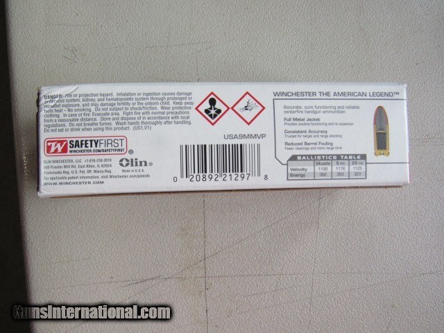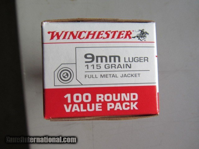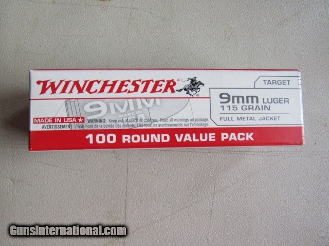Winchester 9mm Ammo 115 FMJ 100 Round Pack New Stock FREE SHIPPING