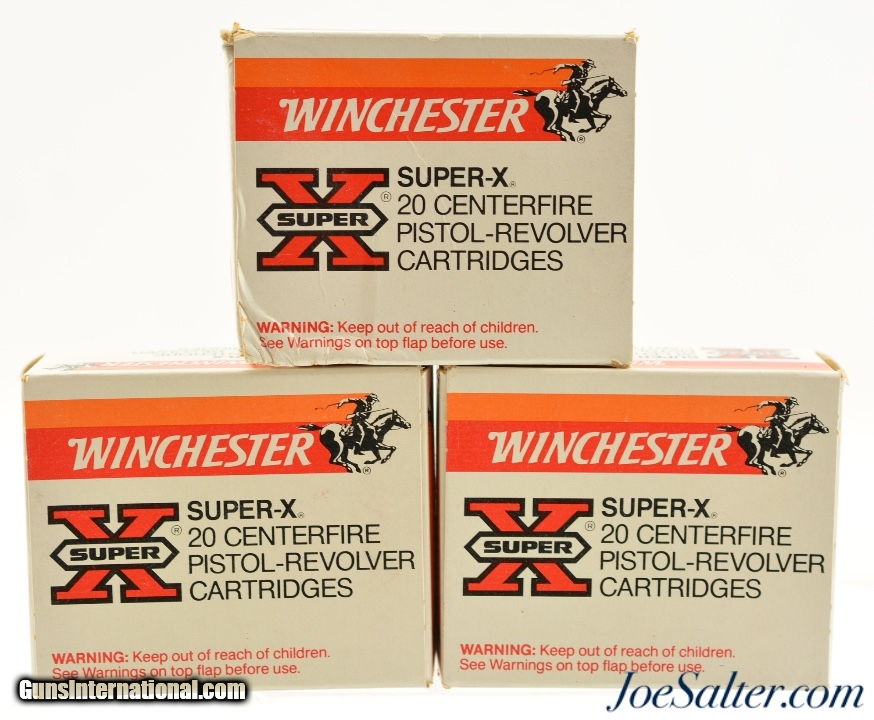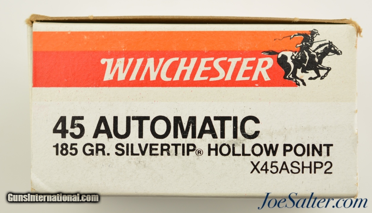 Description: This is 3 full NOS, 20 round boxes of Winchester Super X .45 automatic 185gr. Silvertip HP Ammo. One of the boxes is crunched on one corner with no effect to the ammo. X45ASHP2 SOLD |