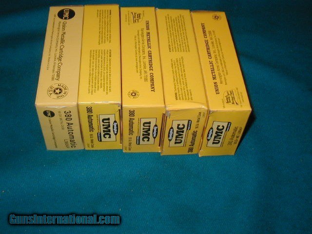 .380, ACP , 5 BOXES , MINT BRAND NEW, REMINGTOM UMC,