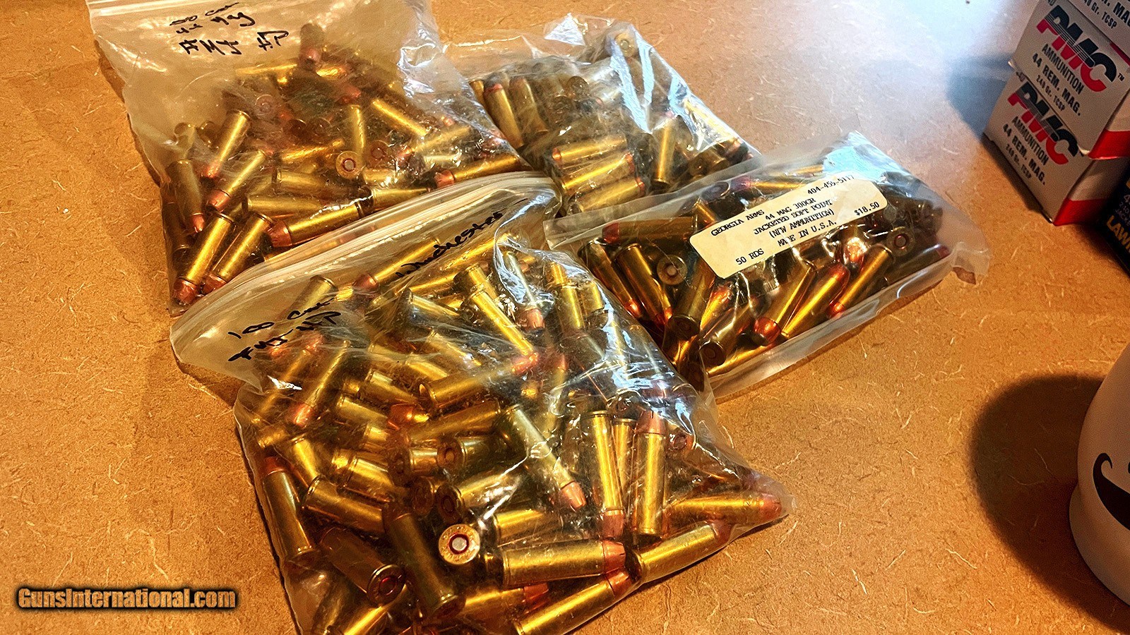 Description: *** SOLD *** From the estate of a late Air Force Colonel in Tampa, FL. He was an avid competition shooter who had been reloading for fifty years. He was also an avid Crown Royal enthusist, each lost will be in a new blue bag. Lot A-001 is for two-hundred and fifty (250) rounds of .44 Magnums. Cannot say for sure if this batch is all new, or if some are reloads. They do appear new. One-hundred in a Zip-loc bag - handwritten description: 100 Cnt FMJ HP Winchester Fifty in sealed bag: Georgia Arms 44 MAG 300GR (NEW AMMUNITION) 50 RDS MADE IN THE U.S.A. Fifty in Zip-loc bag - handwritten description: 50 Cnt 44 Mag FMJ HP Fifty in bag - cannot see description, appear to be metal jacketed soft hollow point. Selling as is, no returns on any ammunition. Should you deem them to be unsafe, you can de-construct for reloading. All are as new, bright and clean with no damage or marks. Shipped USPS ground insured for $25.00 $125.00 SOLD Handgun Caliber: .44 Remington Magnum |
