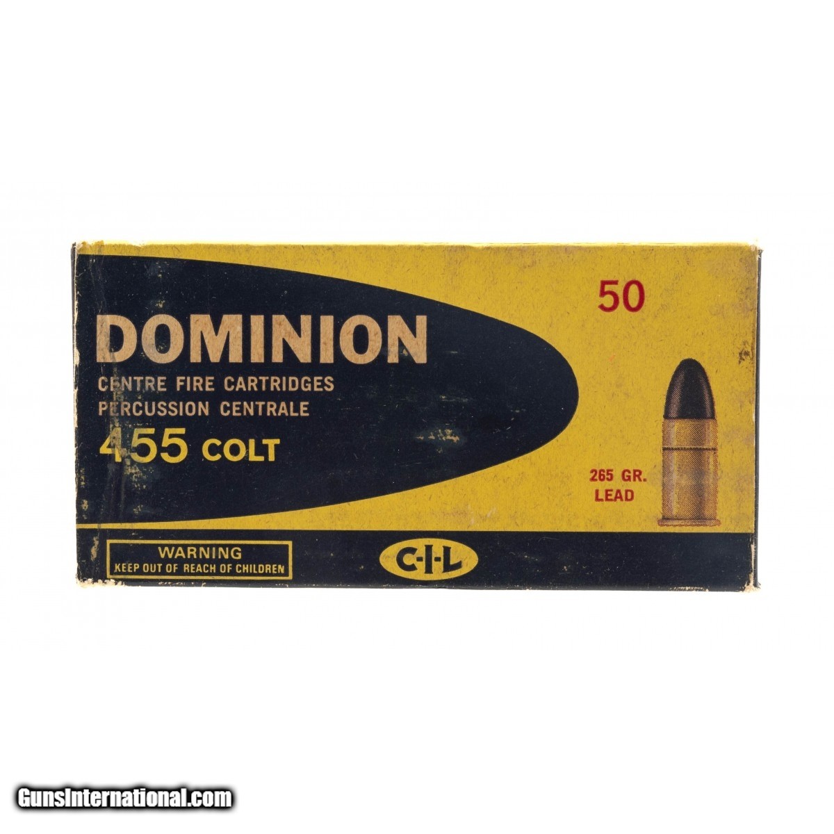 Description: " 455 Colt Cartridges 265gr lead by Dominion C-I-L Canadian Industries Limited. Full box of 50rds. SOLD |