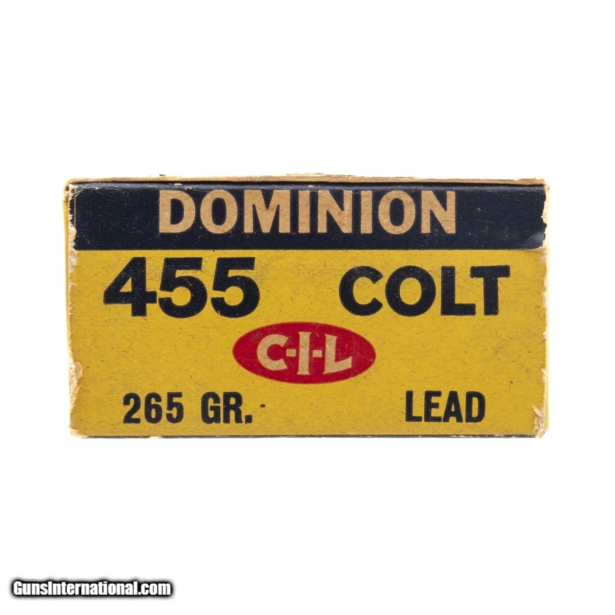 455 Colt Cartridges 265gr lead by Dominion C-I-L Canadian Industries Limited. Full box of 50rds.