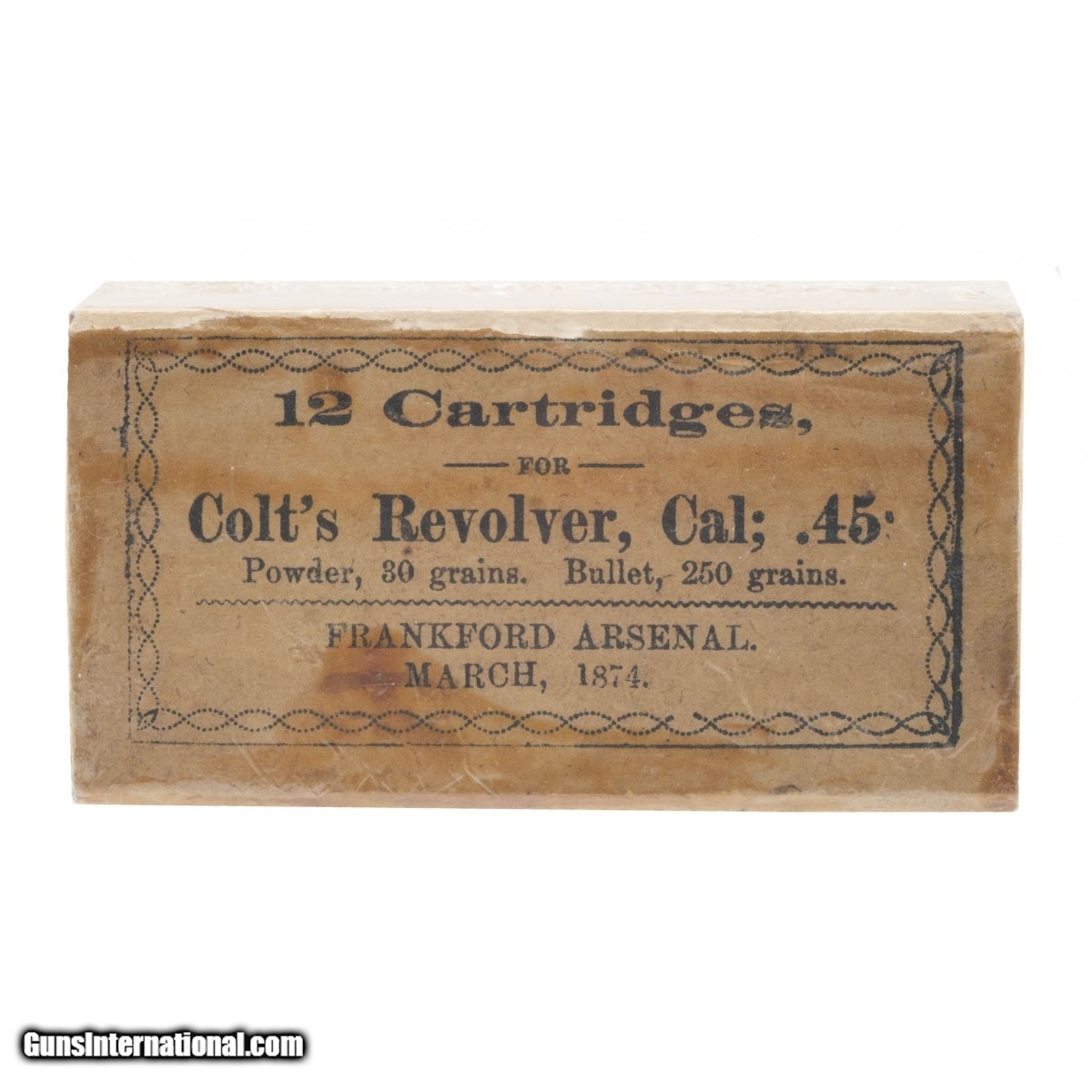 Description: " Colt`s Revolver, Cal; .45 by Frankford Arsenal Dated 1874. Sealed Box of 12. SOLD |