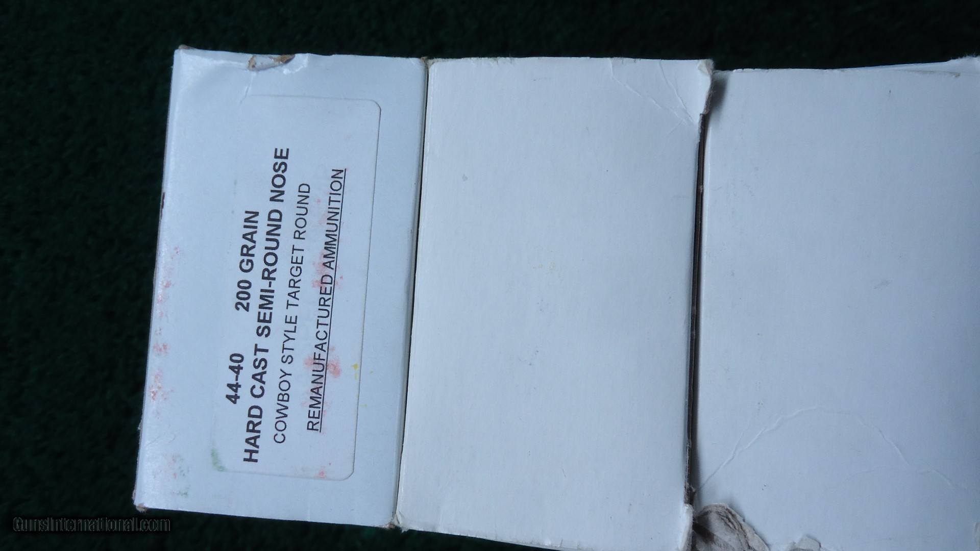 Description: 2 full boxes of Atlantic Ammunition Company 44-40 Win 200 Grain Jacketed Soft Point Bullets. 100 Rounds. And 1 box of DCI brand 44-40 200 Grain Hard Cast Semi-Round Nose "Cowboy Style Target Rounds". 45 live rounds and 5 brass shell casings for re-loading. 45 Rounds. So you get 145 rounds total. This caliber is getting hard to find. Free Shipping. Leroy Merz Antique Firearms specializes in antique and vintage Winchesters and other fine American firearms. Since 1965 Mr. Merz has taken part in the world of firearms and has been a contributor to many well known reference books. We have hundreds of additional guns in every price range at our home online. Search for Merz Antiques in google. SOLD |