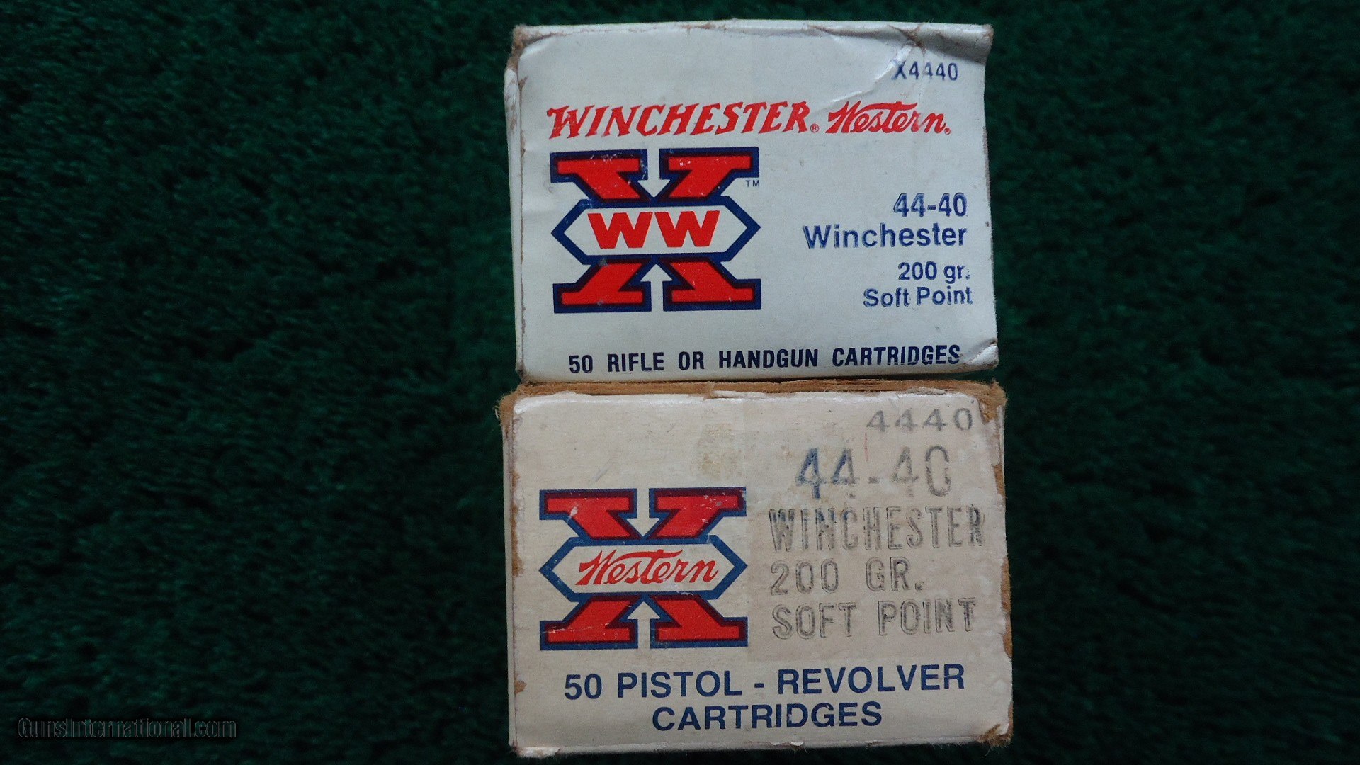 Description: 1 full boxes of 50 rounds of 44-40 caliber 200 Grain Soft Point Bullets and 1 partial box with 44 live rounds. 94 rounds total. These are hard to find. Get them while you can. Free Shipping. Leroy Merz Antique Firearms specializes in antique and vintage Winchesters and other fine American firearms. Since 1965 Mr. Merz has taken part in the world of firearms and has been a contributor to many well known reference books. We have hundreds of additional guns in every price range at our home online. Search for Merz Antiques in google. SOLD Rifle Caliber: .44-40 Winchester Handgun Caliber: .44-40 Winchester (.44 WCF) |