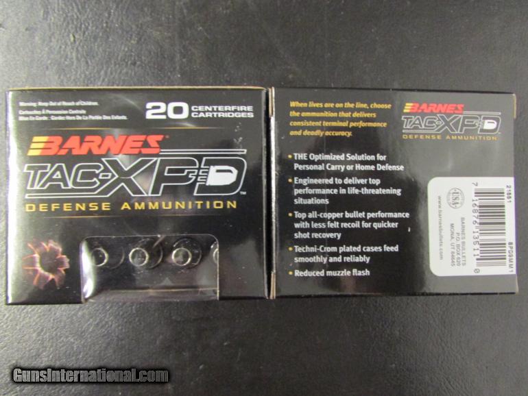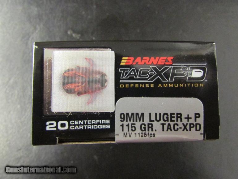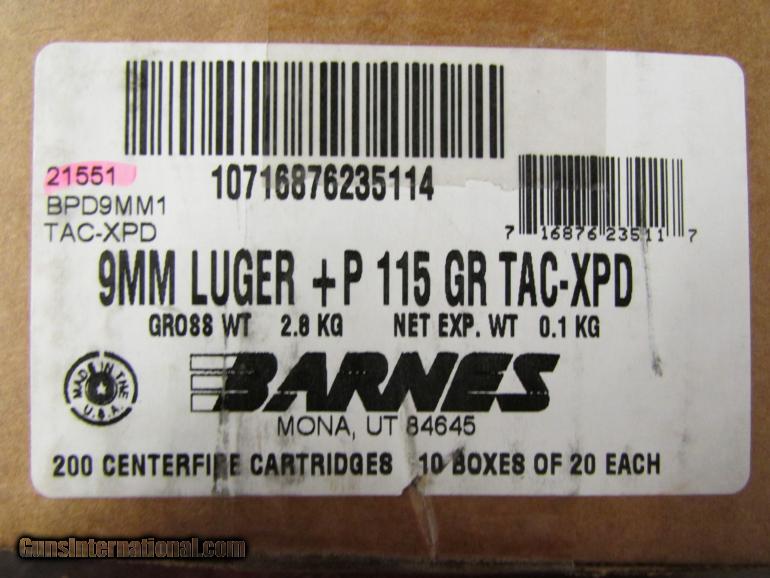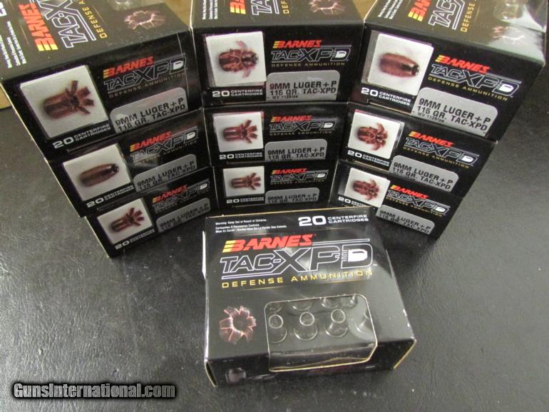 200 ROUNDS BARNES TAC-XPD 9MM 115 GR +P