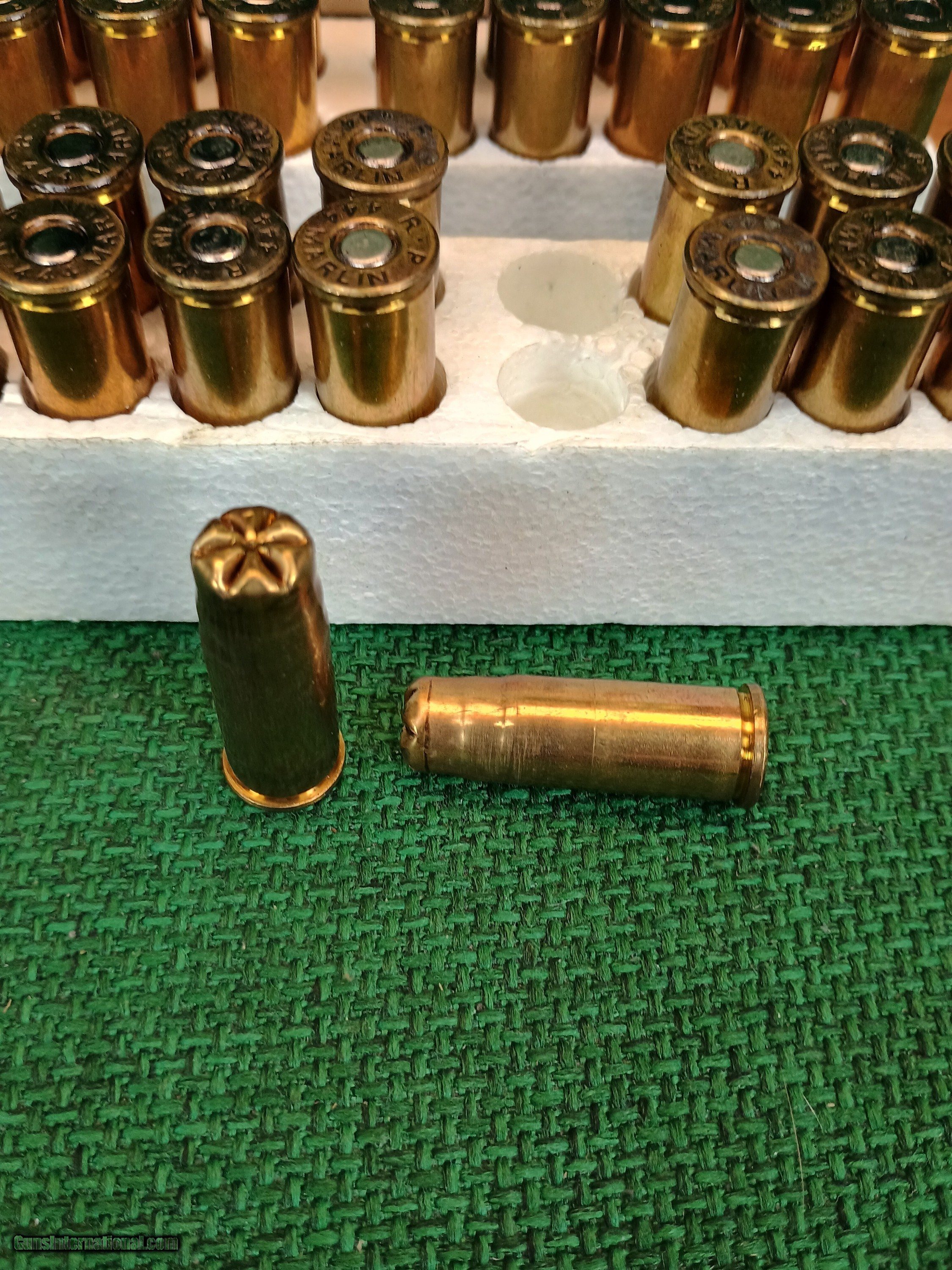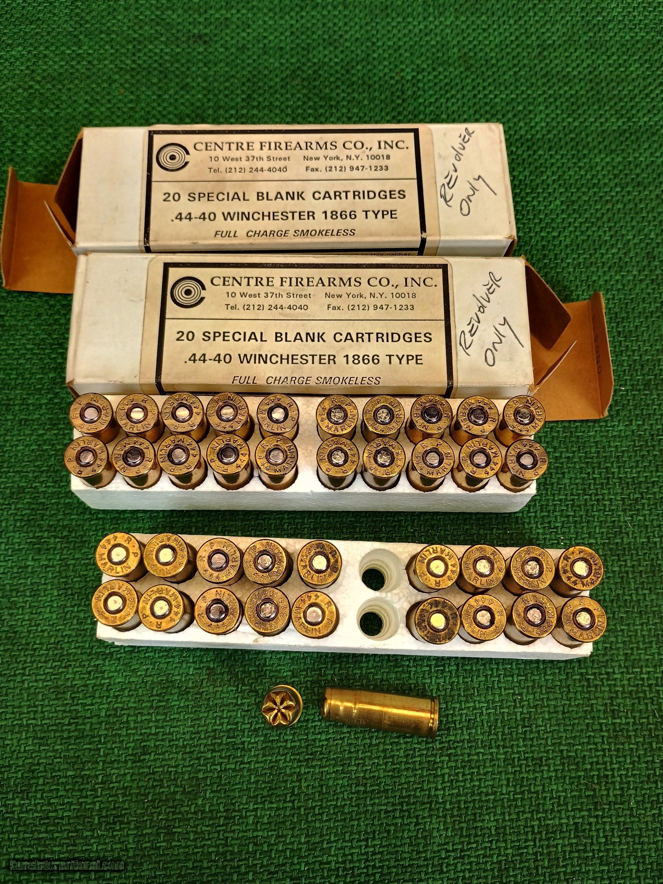 Description: Factory made 44-40 blank rounds. Two boxes of 20 for a total of 40 rounds. These are labeled Centre Firearms Co and made from trimmed and crimped 444 Marlin brass. Boxes were hand marked revolver only. Shipping Handgun Caliber: .44-40 Winchester (.44 WCF) Price: $45.00 Shipping: $10.00 Contact Seller |