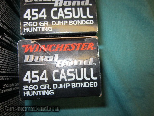 Description: 300 rounds of 454 Casull new. winchester 260gr Platnum tip HP, 260 gr Dual bonded HP, and Hornady 240 gr XTP. ADD 3% for credit cards,shipping is 35.00. 260 409 9828 SOLD |