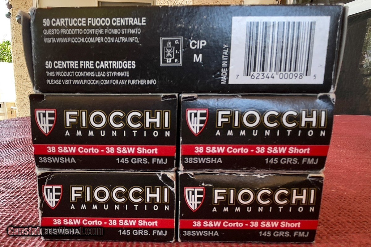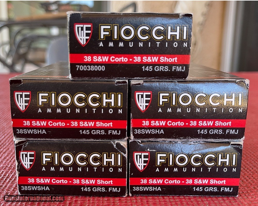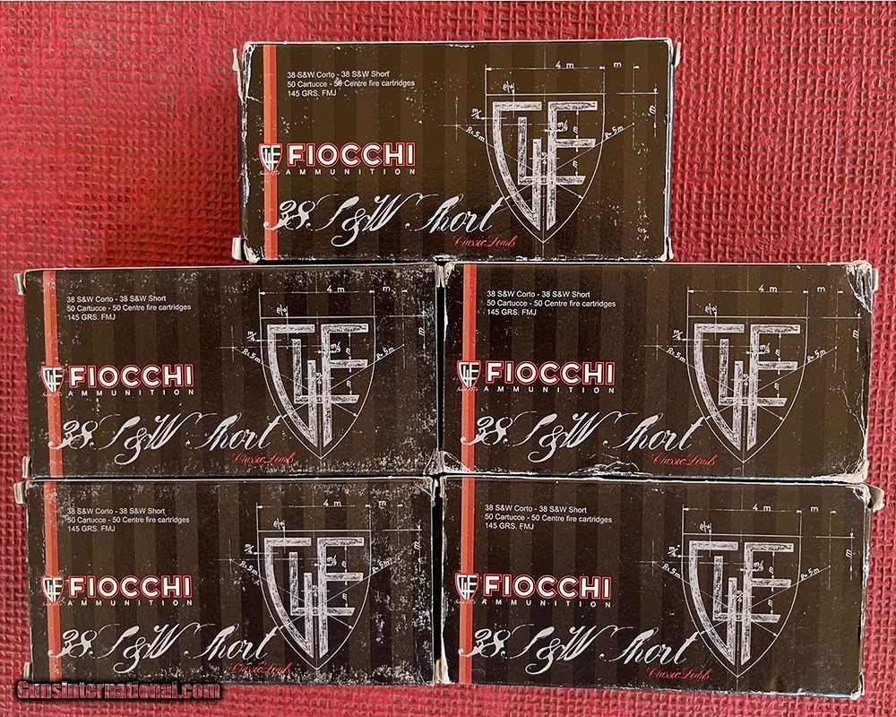 5 boxes 250 rounds Fiocchi 38 S&W short 145 Gr
