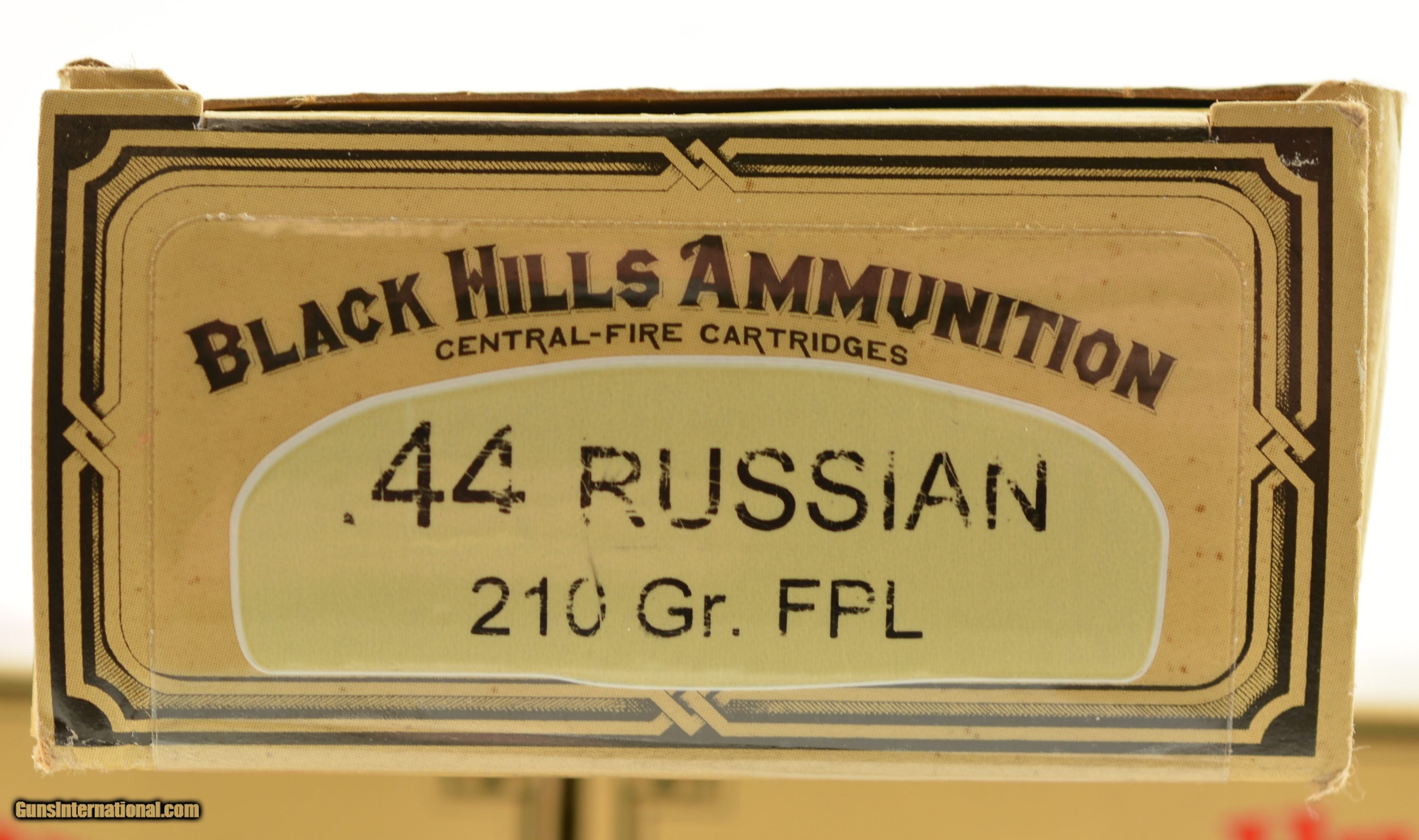 Description: This is a lot of 3 full boxes, 150 total rounds, of .44 Russian ammo manufactured by Black Hills Ammunition with 210 grain flat point lead bullets. The boxes and cartridges are in excellent condition. SOLD Manufacturer: Black Hills Caliber Info: .44 Russian Gauge Info: .44 Russian |