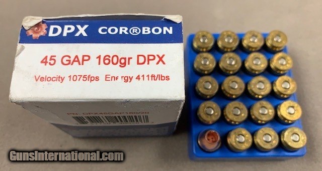 COR BON .45 GAP 160 Grain DPX (Hollow Point) - 5 Boxes (100 Rds)