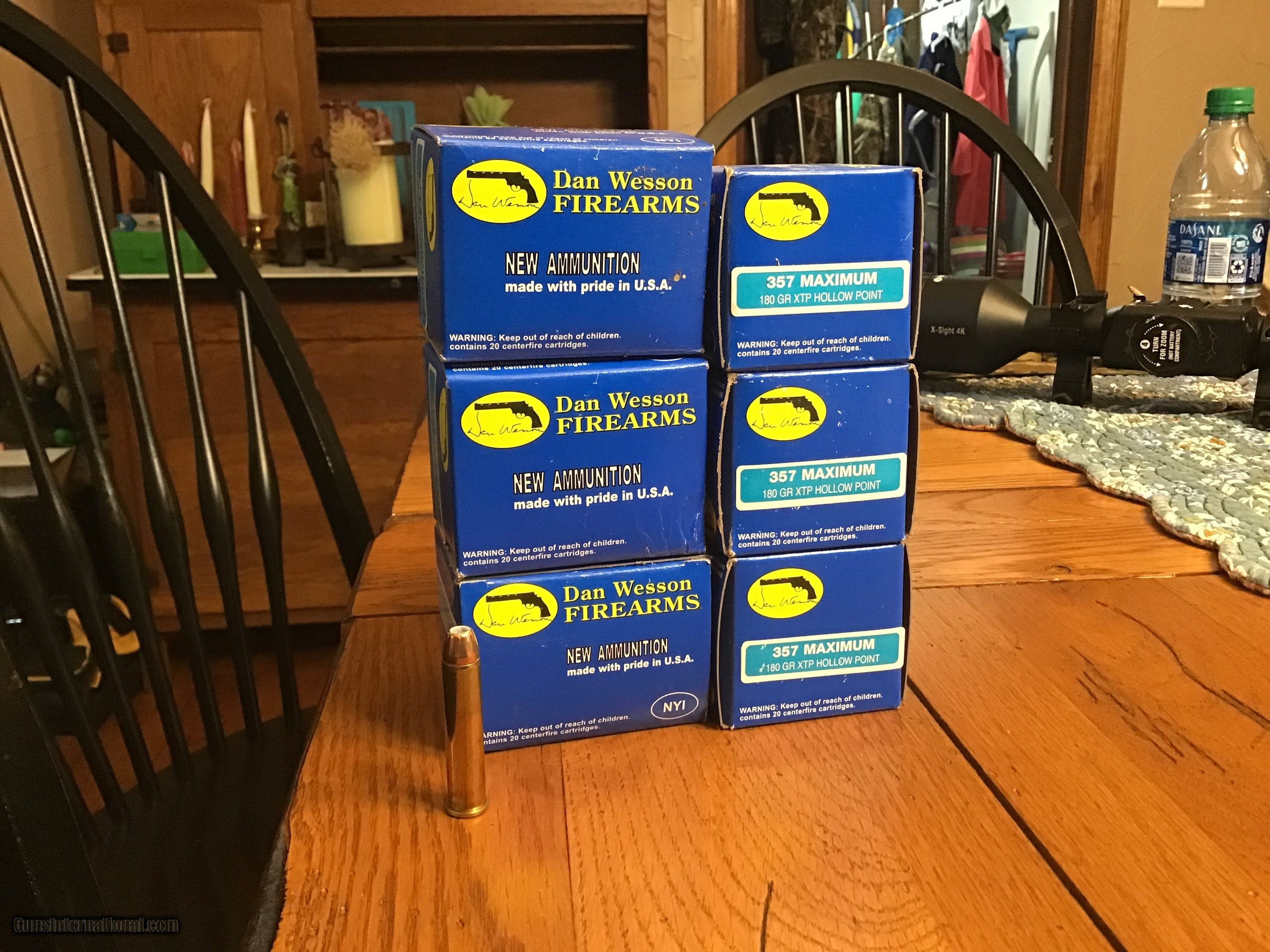 Description: 6 Boxes of Dan Wesson 180 grn 357 max . NOS . Excellent condition , 20 rnd each , 120 rnds total $300.00 + shipping where legal SOLD |