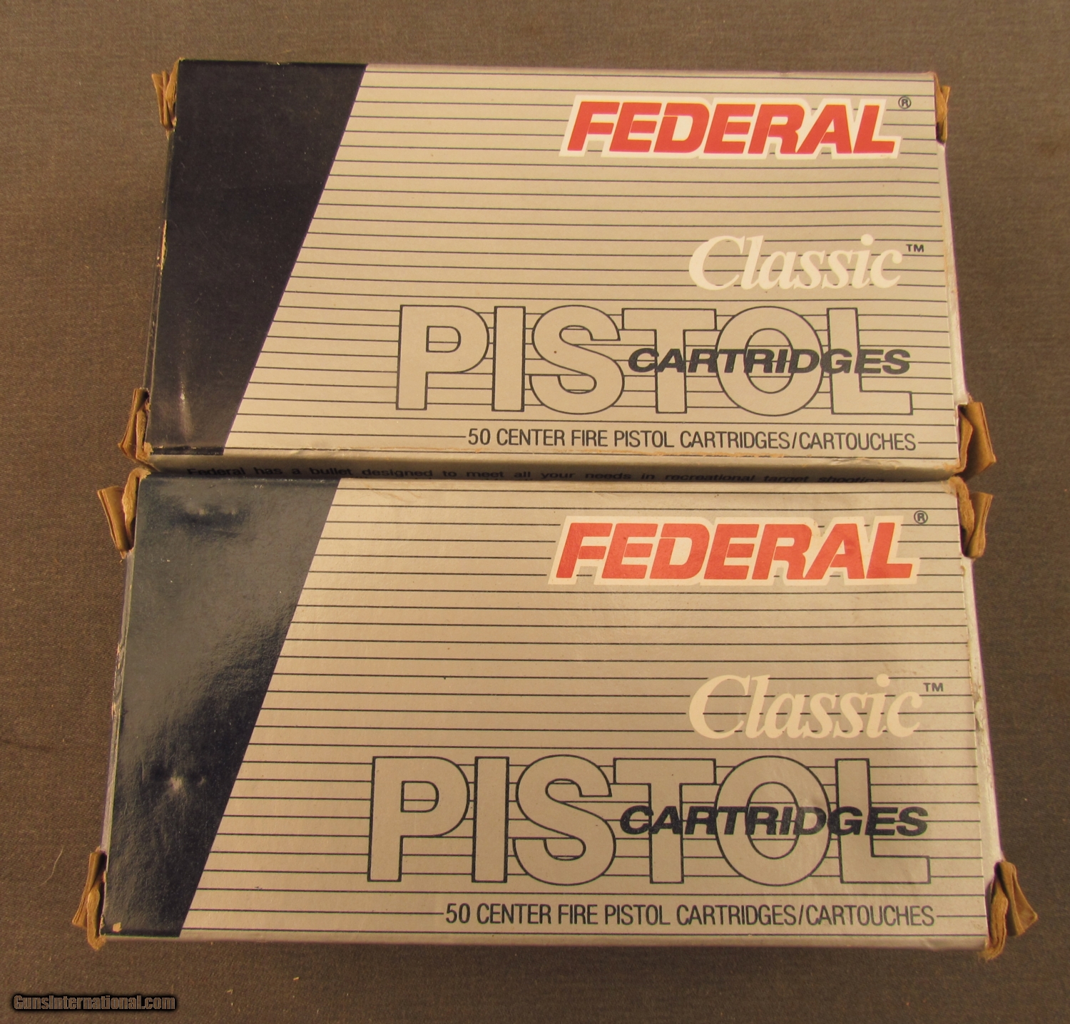 Description: Two full 50 round boxes (100 rounds total) of 32 H+R mag loaded with 85 grain hi-stock jacketed hollow point bullets. Boxes show light shelf wear with old price stickers on bottom. Ammo remains bright and clean. SOLD Manufacturer: Federal Model: Ammo Caliber Info: .32 H&R Mag Gauge Info: .32 H&R Mag |