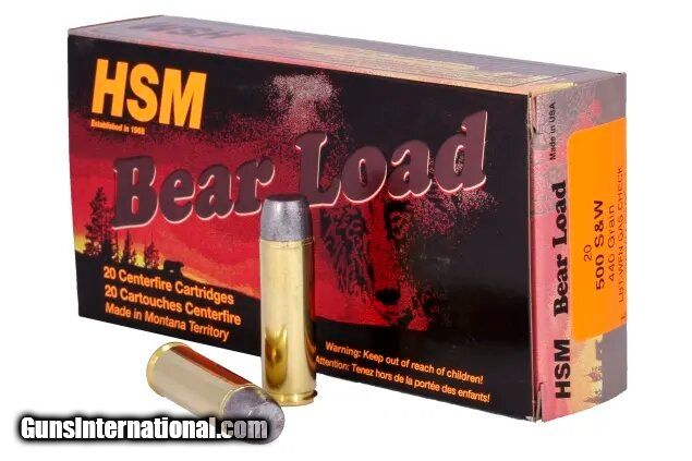 HSM Bear Load 500 S&W Magnum Ammo 440 grain LBT-Wide Flat Nose Box of 20 Rounds HSM-500SW-6-N
